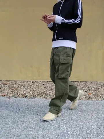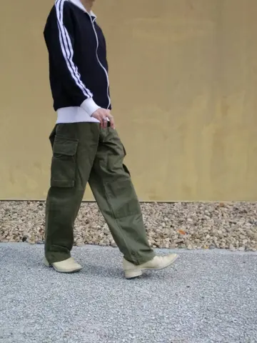 コーデ #adidas #trackjacket #トラックジャケット #ベッケンバウアー #frenchmilitary #M47 #フランス軍 #カーゴパンツ #HBT #carolchristianpoell #キャロルクリスチャンポエル #derbys #ダービーシューズ #ccp #poell