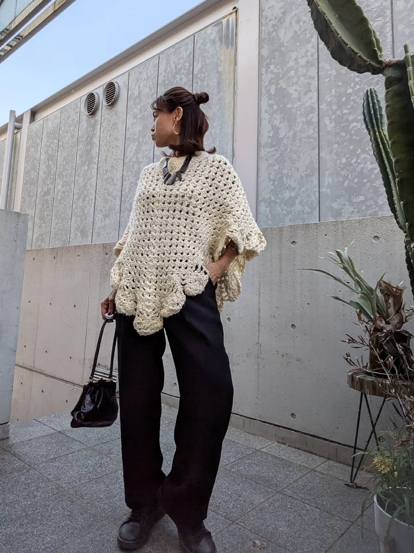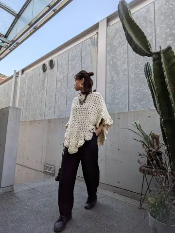 ぬくぬくふわふわポンチョコーデ ♥ storefrontpongevintage #vintage #ニットポンチョ#ニットコーデ #adidas#スタンスミス