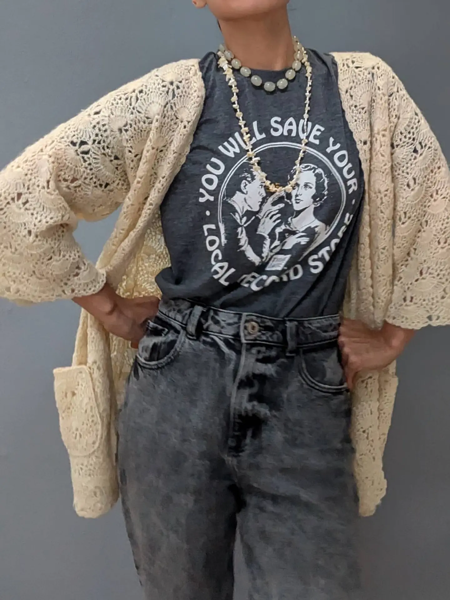 軽くてあったかいVaVabyjoyhan🇺🇸の ニットカーディガン🧶コーデ storefrontpongevintage #VaVabyjoyhan#ニットカーディガン