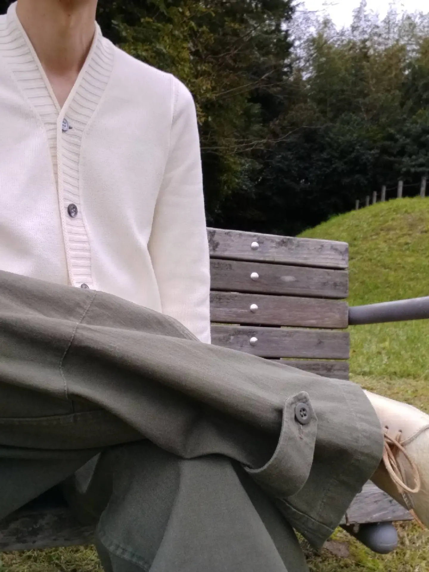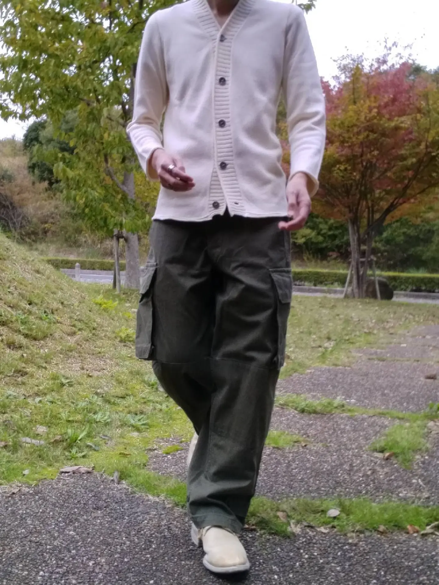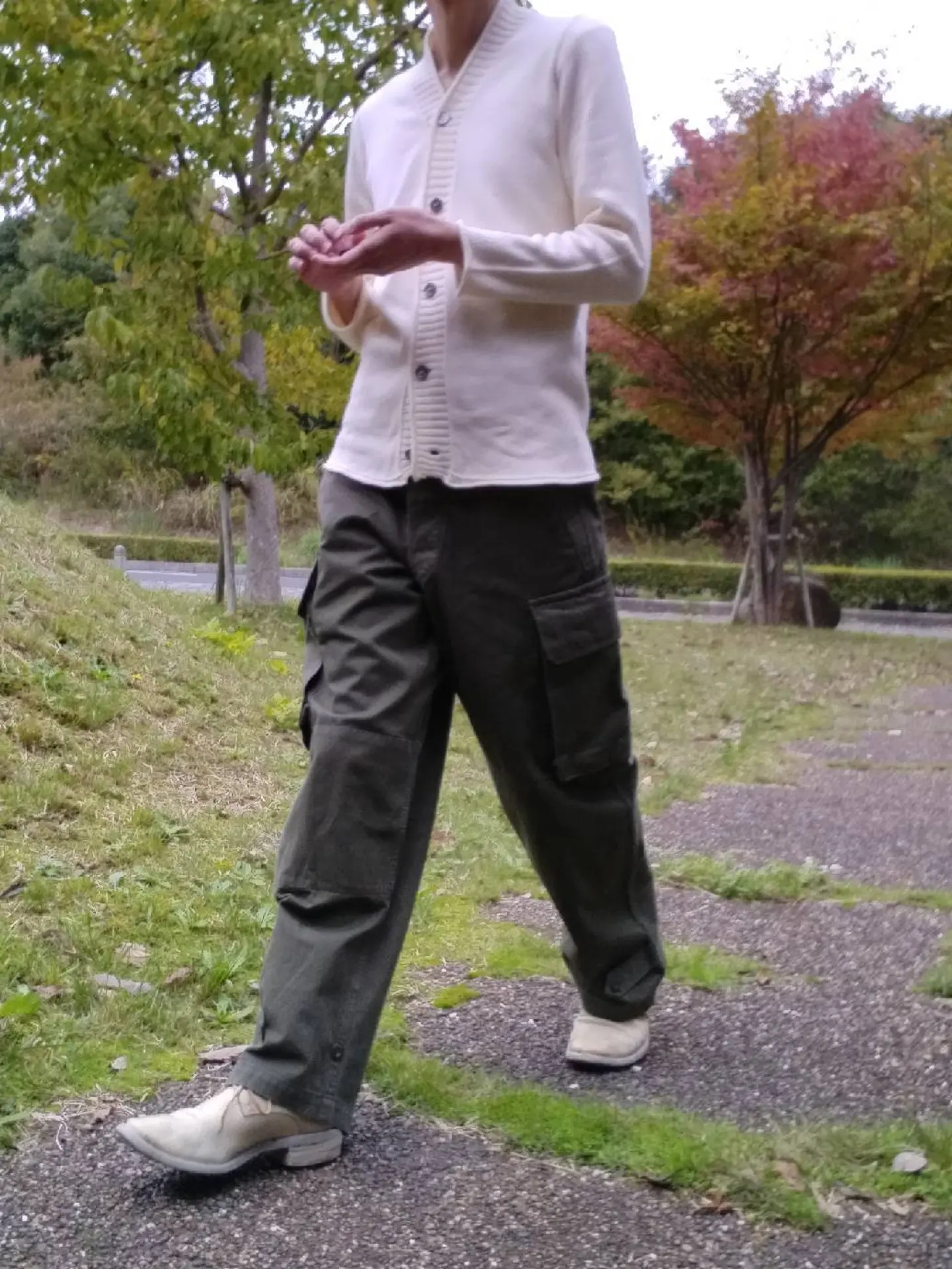 コーデ #motherhandartisan #カーディガン #cardigan #knit #frenchmilitary #M47 #フランス軍 #カーゴパンツ #HBT #carolchristianpoell #キャロルクリスチャンポエル #derbys #ダービーシューズ #ccp #poell