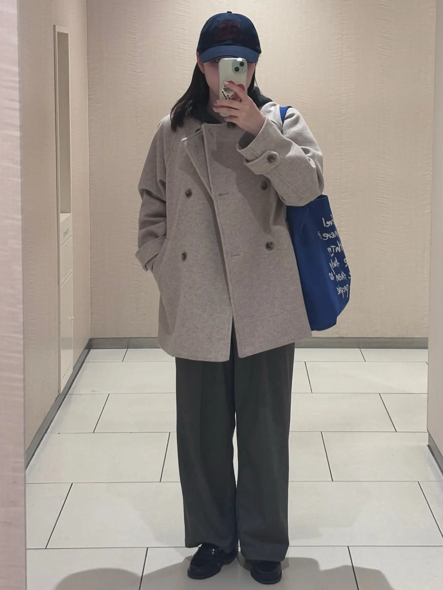 差し色に青🟦を取り入れて、、 冬コーデ楽しい😀