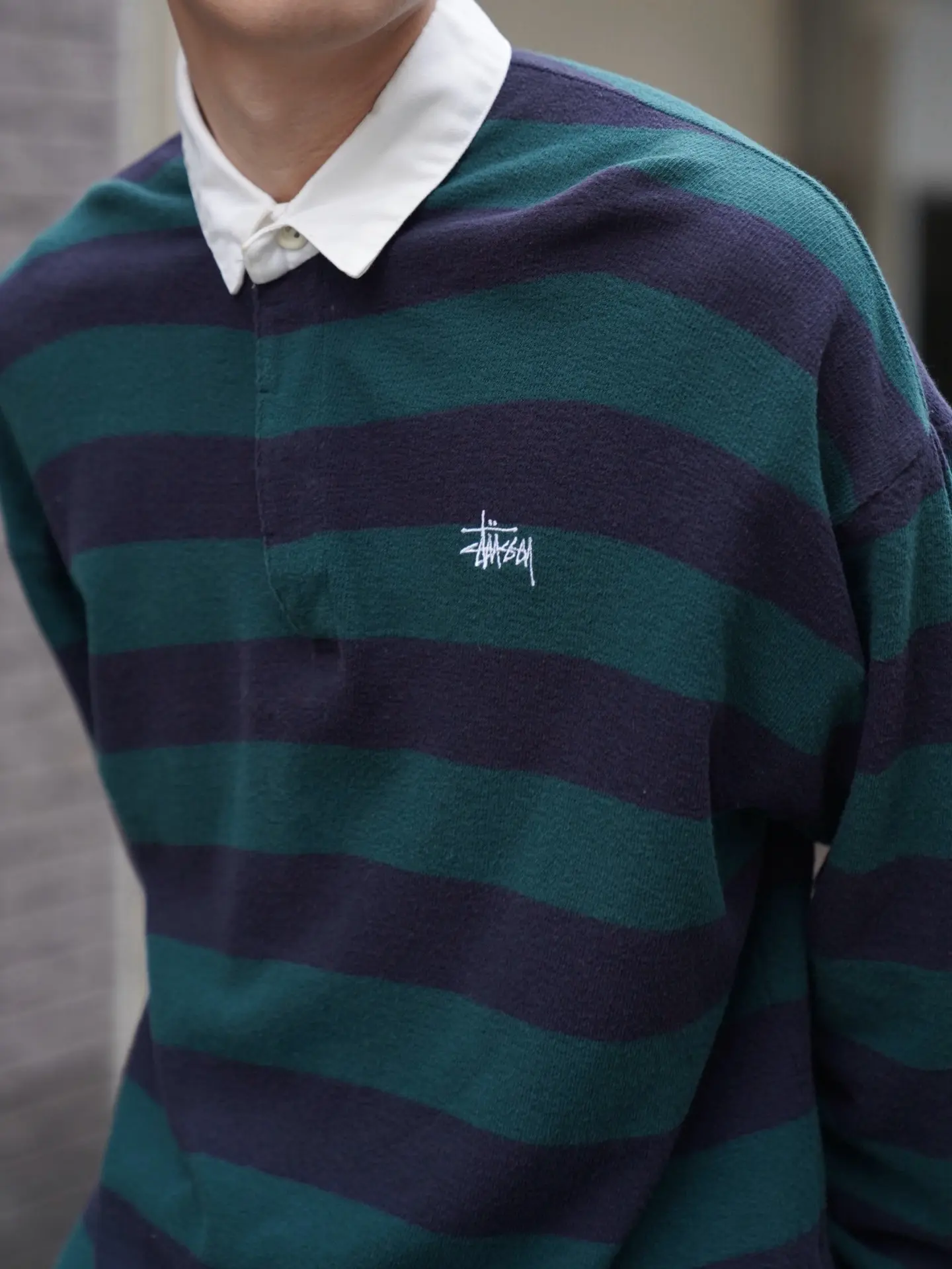 90s old stussy ステューシー ラインプリント グリーン ボックスシルエット スウェット