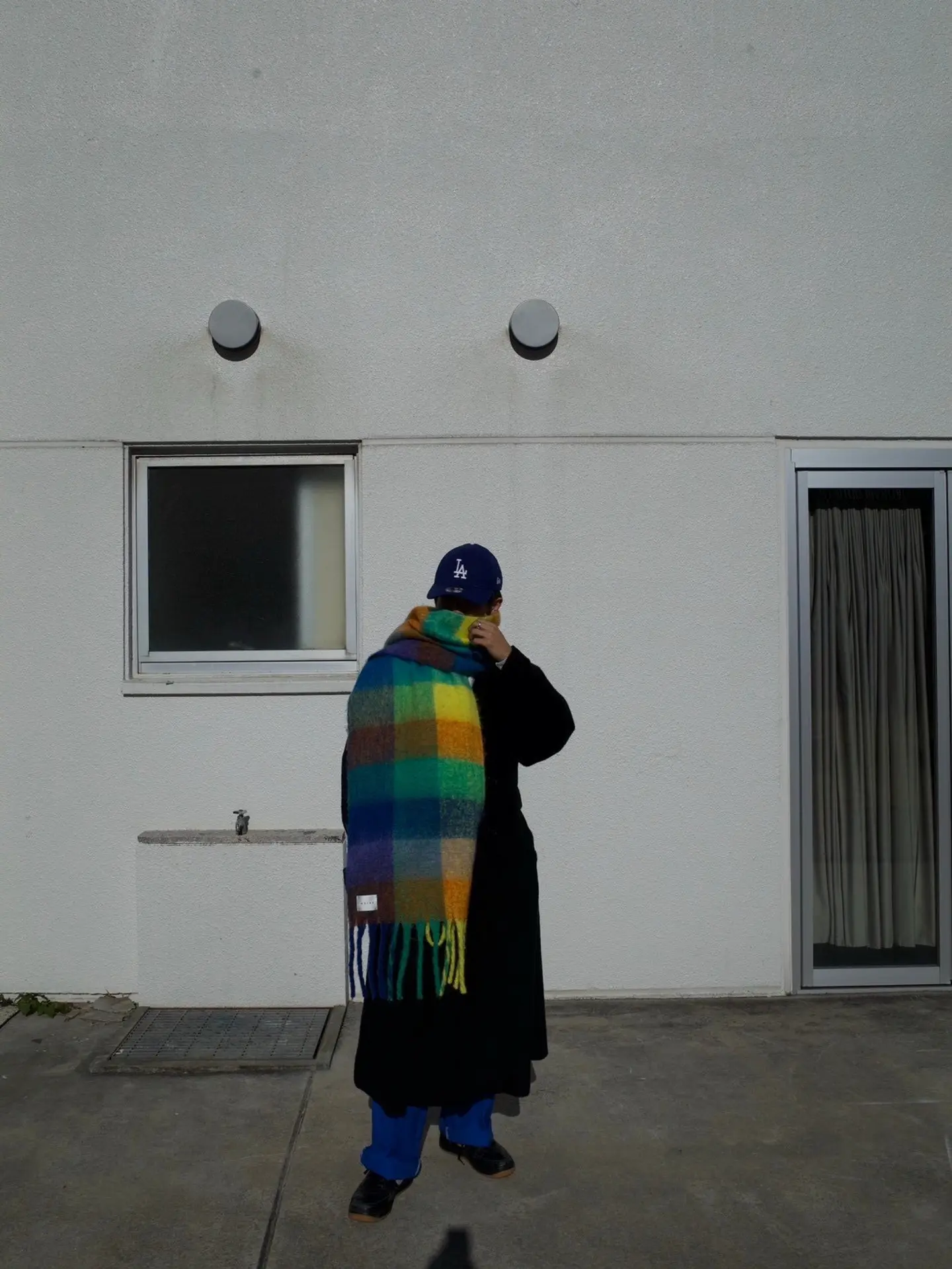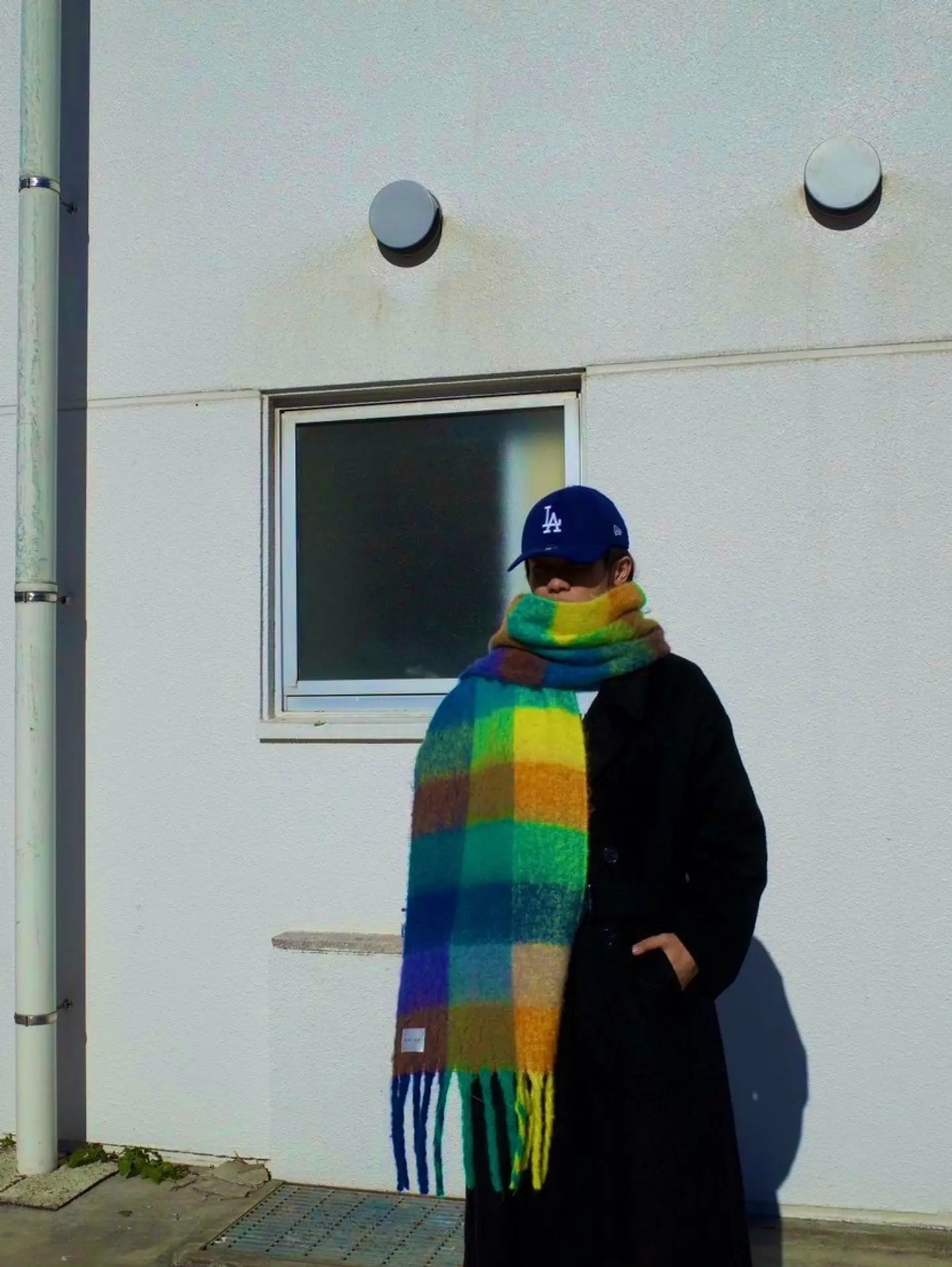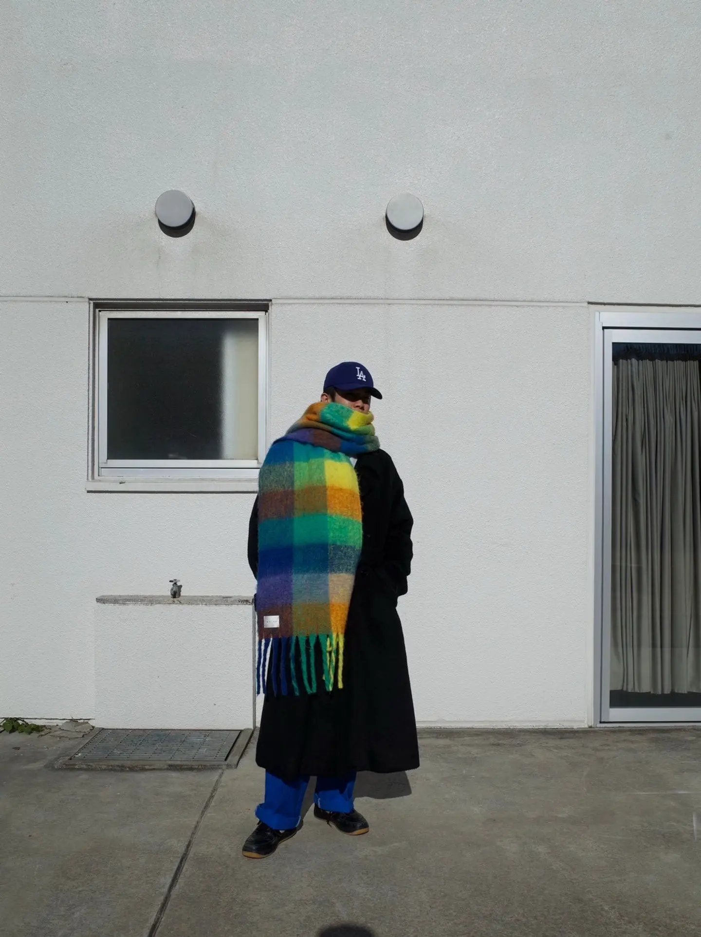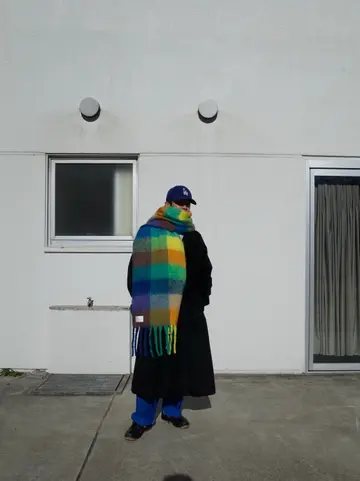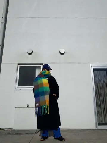 大判マフラー #海外ボーイ #モードミックス #ロングコート #ベースボールキャップ