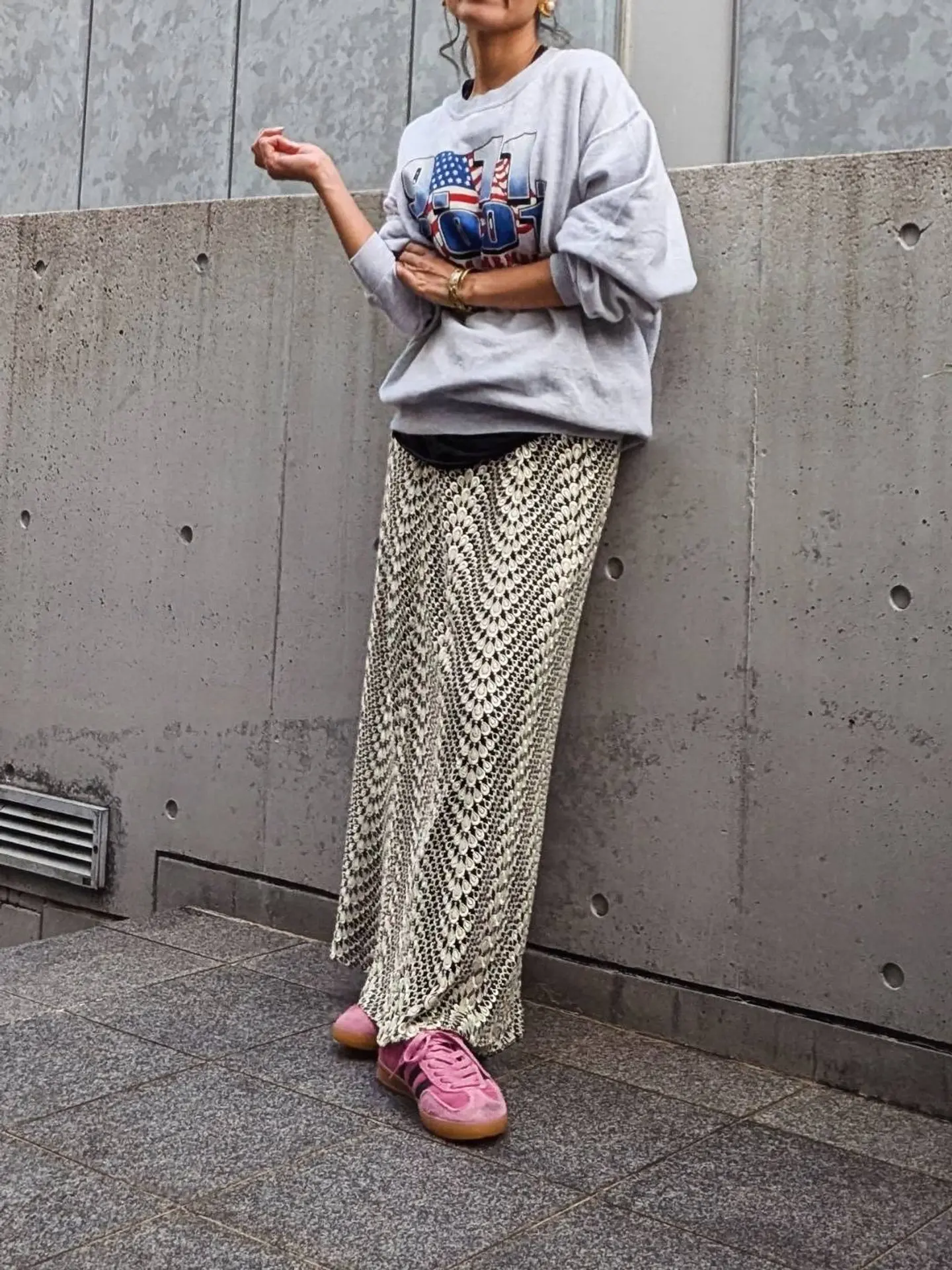 スウェット&レースロングスカートコーデ storefrontpongevintage