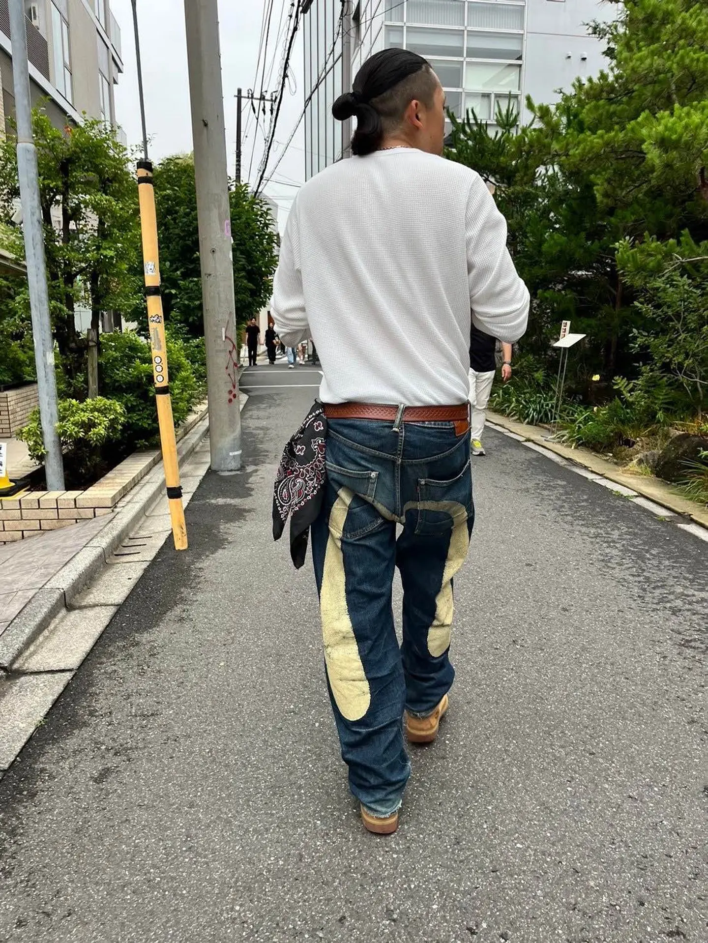 【Size34】90s ティンバーランド ジップフライ レザーパッチ デニムパンツ ジーンズ