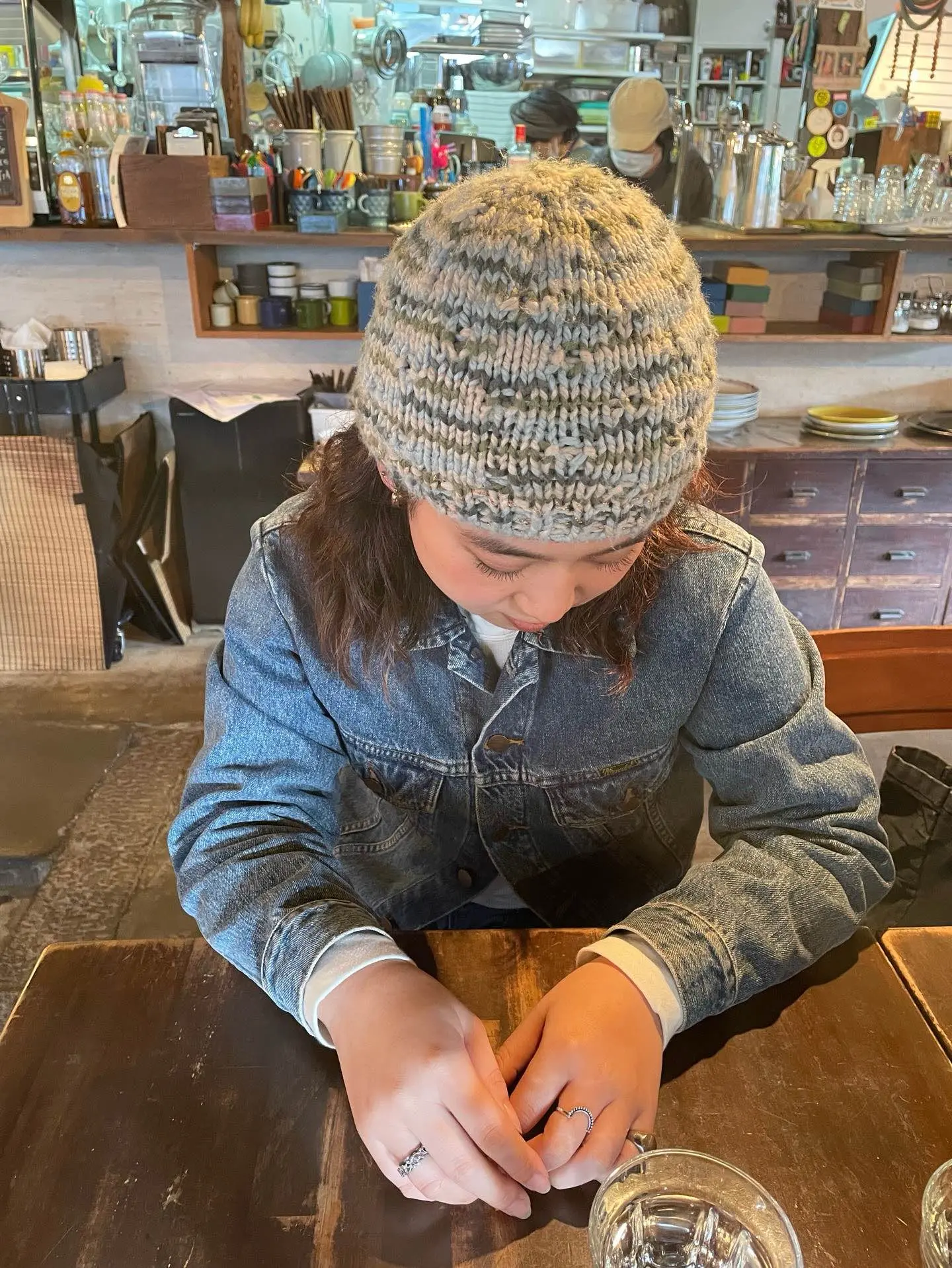 70s 男女OK.職人手編み ウール クロシェ2way ハット