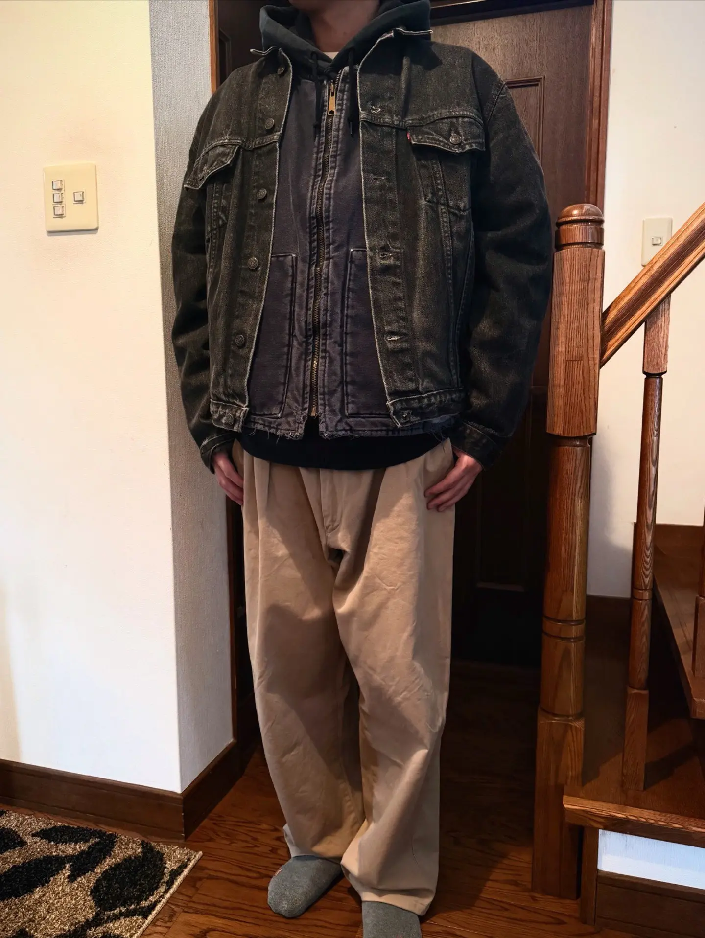 あけましておめでとうございます。 2025年一発目の投稿です。 ブラックのフーディー、ネイビーのダックベスト、ブラックのデニムジャケット、ベージュのチノパンを合わせたワーク感強めのアメカジスタイル。 買ってから初めてカーハートのダックベスト着たけど暖かくて良い感じ。 ただ、XLやから中に着たら若干着膨れするけど許容範囲かな。 久しぶりにユーロリーバイスのブラックデニムジャケットも着たけど相変わらず雰囲気◯ 明日これで外出る予定やけど寒さに耐えられるかちょっと心配。 トップス:#nike アウター1:#carhartt アウター2:#levis パンツ:#poloralphlauren #メンズコーデ #メンズファッション #トレンド #冬コーデ #古着 #服好きな人と繋がりたい #ファッション好きな人と繋がりたい #オシャレさんと繋がりたい #キレイめカジュアル #大人カジュアル #今日のコーデ #古着mix #古着ディグ #フーディー #ベスト #デニムジャケット #チノパン #元旦 #アメカジ