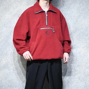 古着 オーバーサイズ ハーフジップ デザイン フリース プルオーバー 刺繍