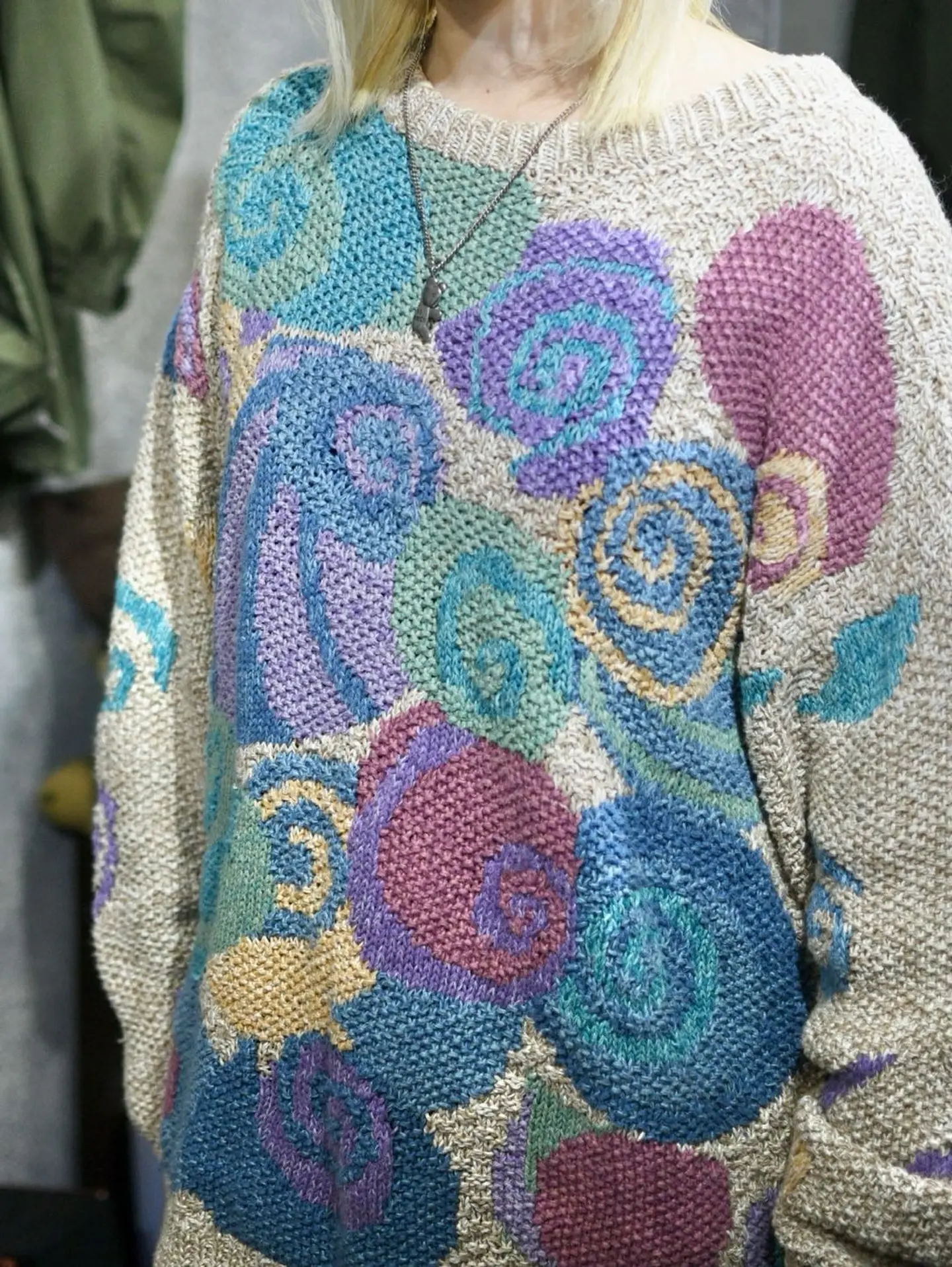 古着 デザインニット ニット セーター アクリルニット グリーン 深緑