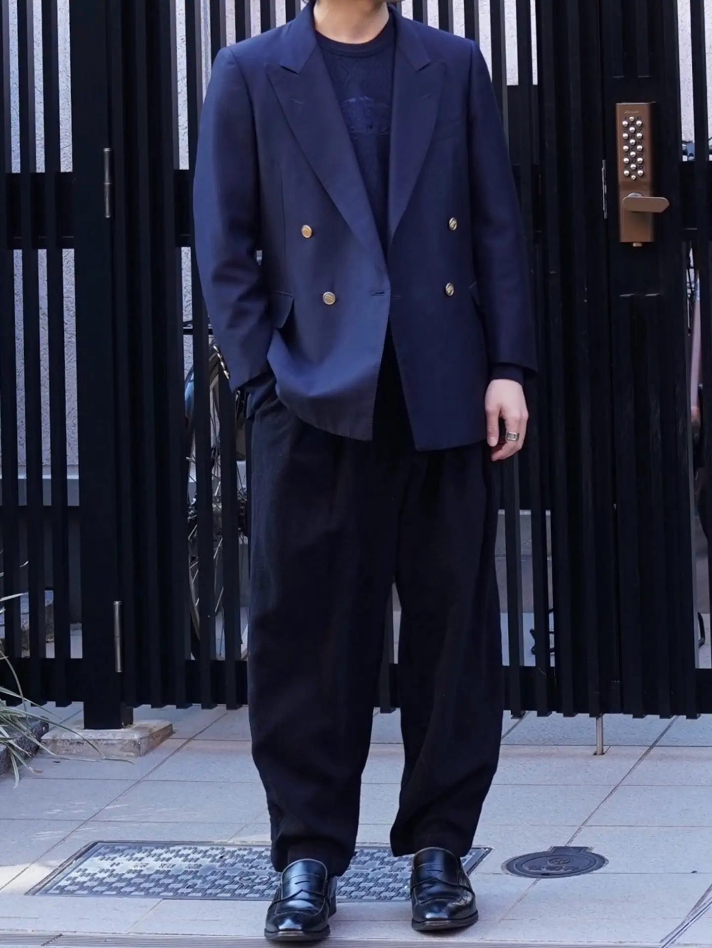 spring coordinate tops:burberrys jacket:burberrys pants:80s issey miyake 170cm着用 全体的に暗めですが、素材感の違う3つのネイビーで構成。 中は明るいのに変えてもいいかもですね このスラックスが良すぎるのでオススメです storefront古着屋no pain no gain(ノーペインノーゲイン) #40s #50s #60s #70s #80s #90s #ガーリー #シンプル #ヨーロピアン #vintage #古着 #used #古着男子 #ootd