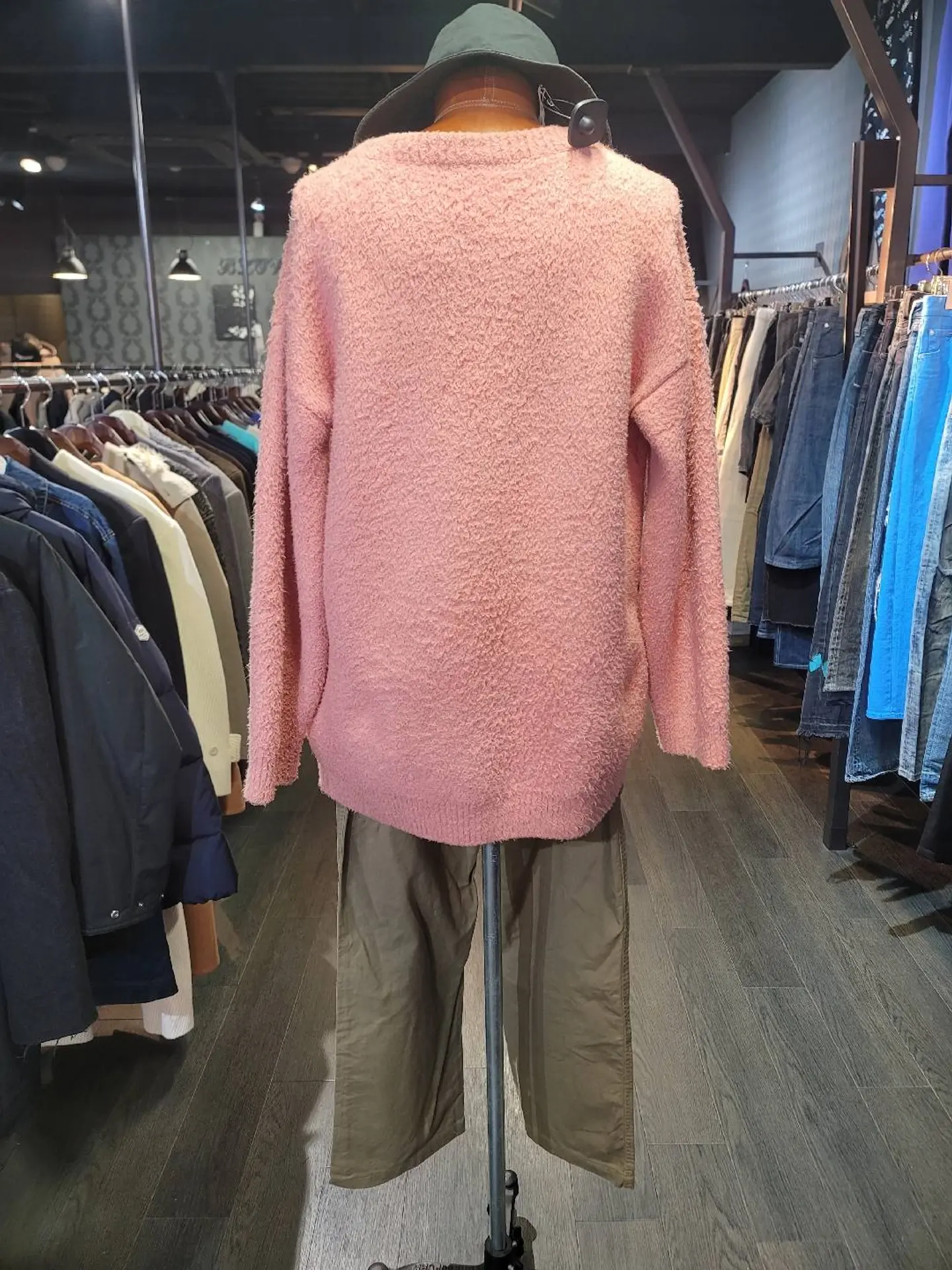 古着 デザインニット モールニット ブラウン ハーフジップニット ニットポロ