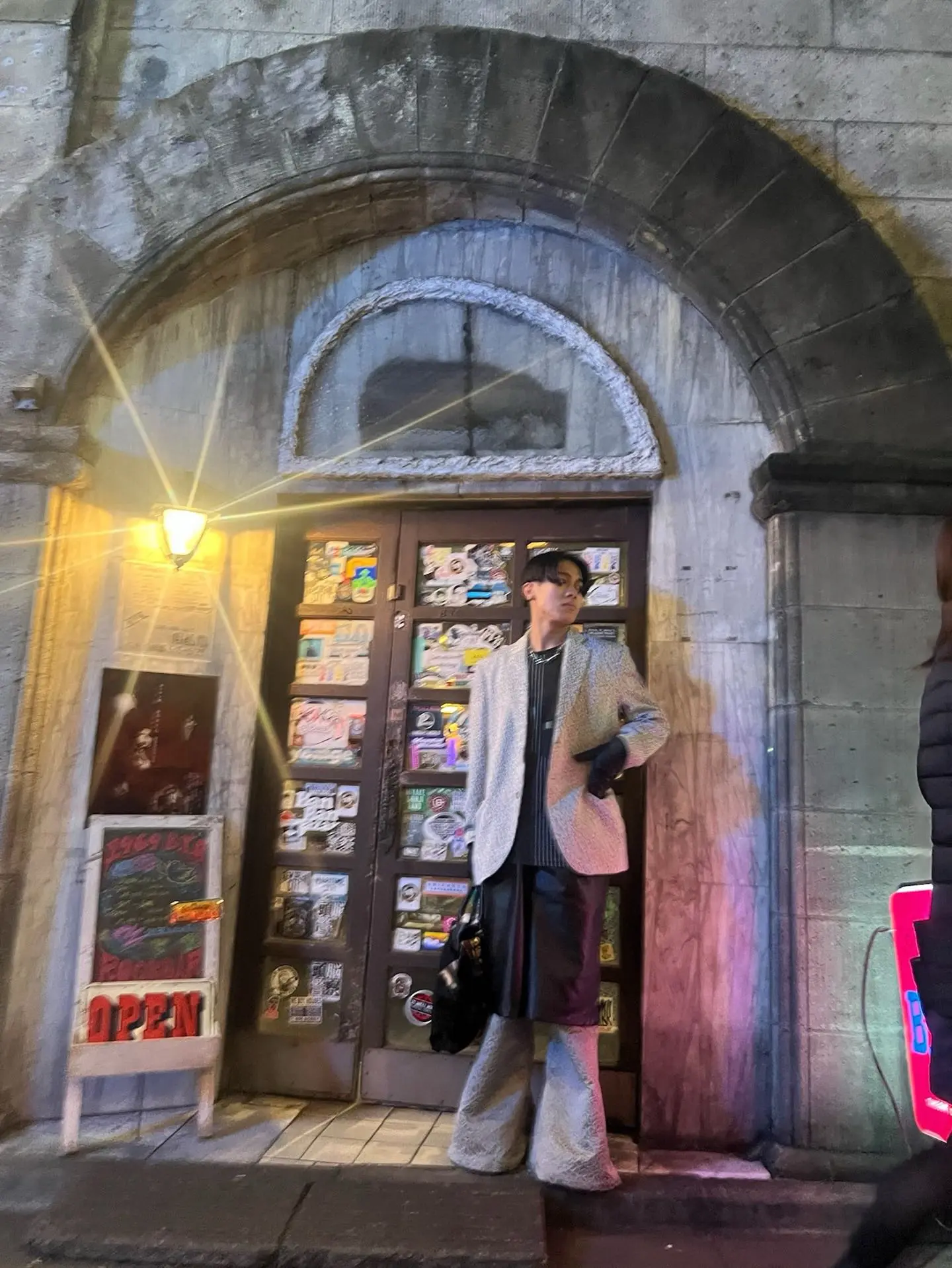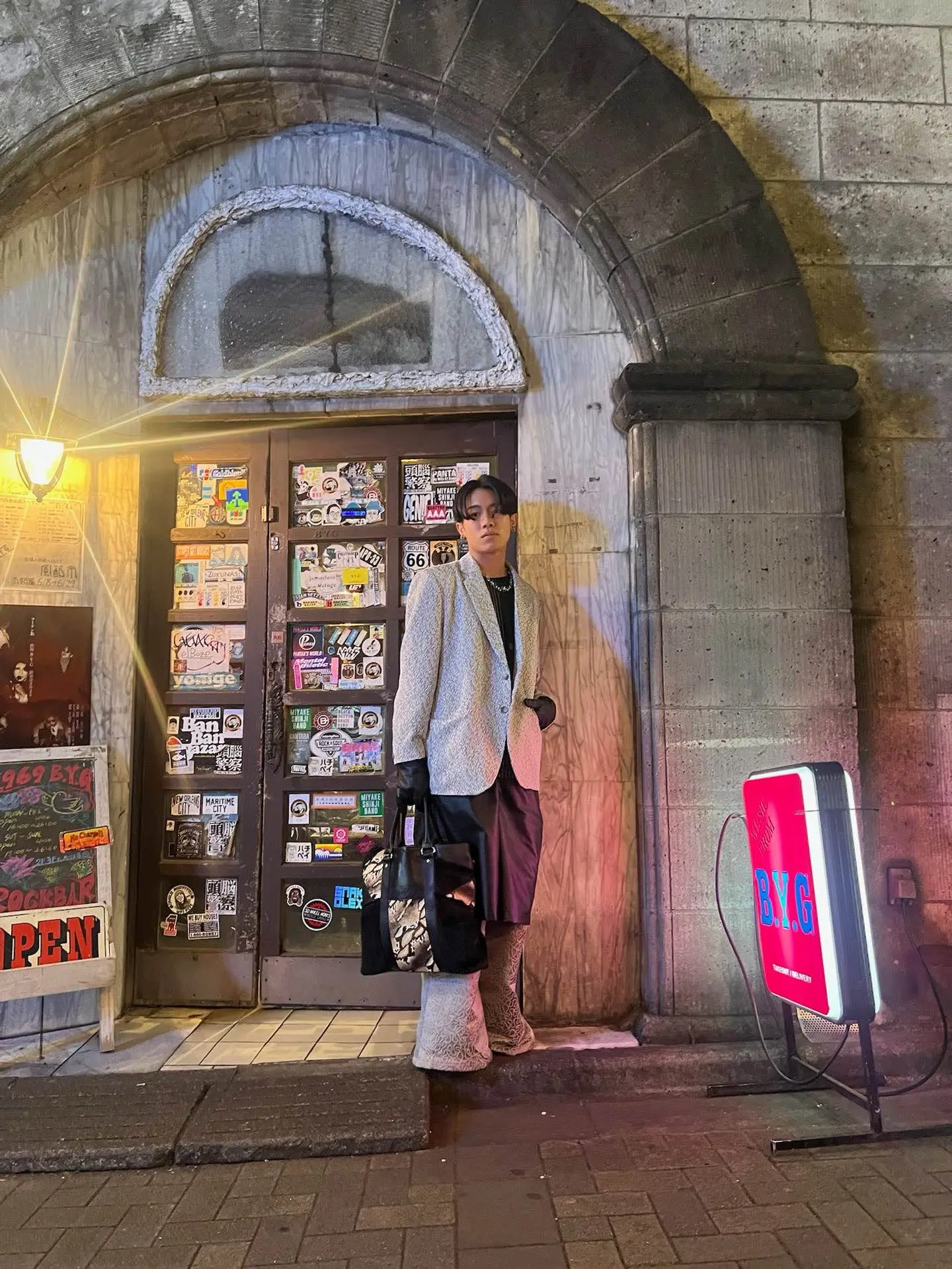 silver code @furugi_holic #テーラードジャケット #スポーツmix #パンツレイヤード #レザーパンツ #フレアパンツ