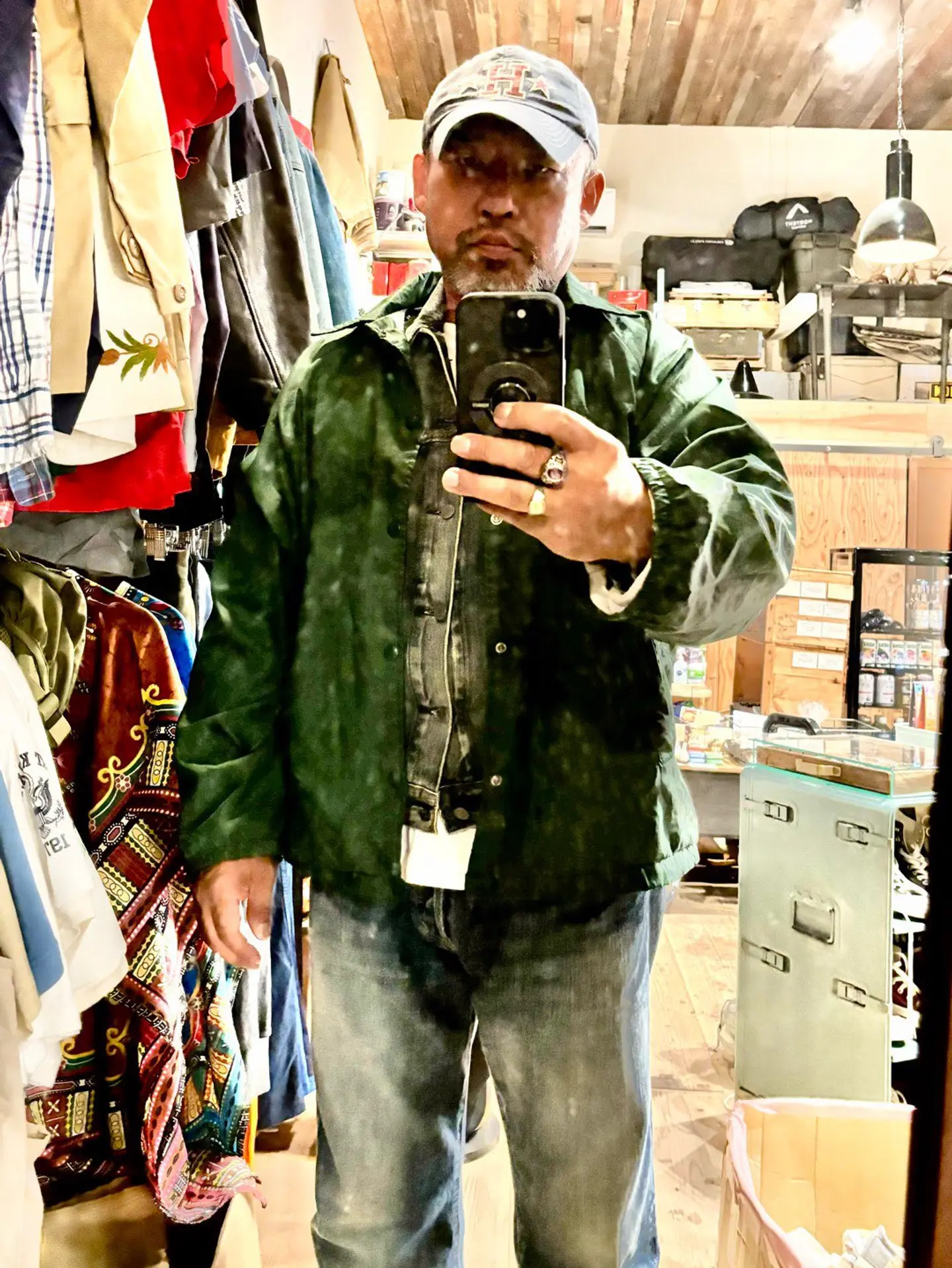 コーチジャケットコーデ インナーにgジャン パンツにデニム キャップもデニム #50s #90s #古着 #vintage #used #古着男子