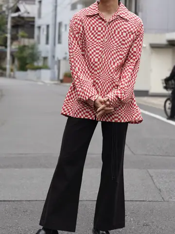 70s R.B.U シャツ リメイク猫目ボタン オルテガ 刺繍