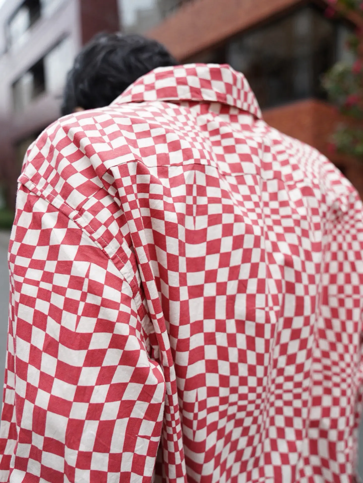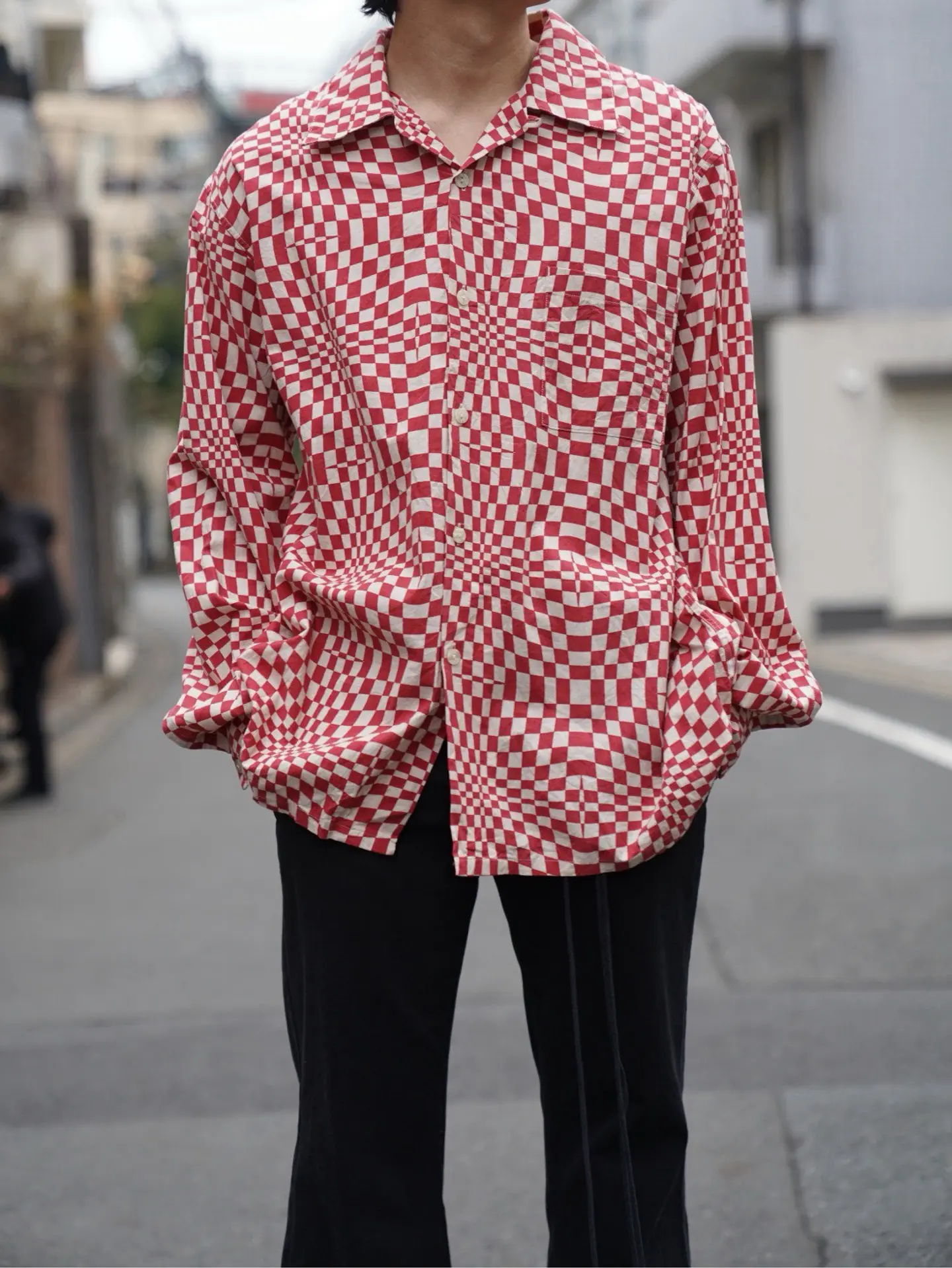 古着 チェックシャツ オープンカラーシャツ デザインシャツ ウールシャツ 青