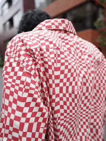 70s Levi's Mad inUSA L/S sheer stripe design shirt