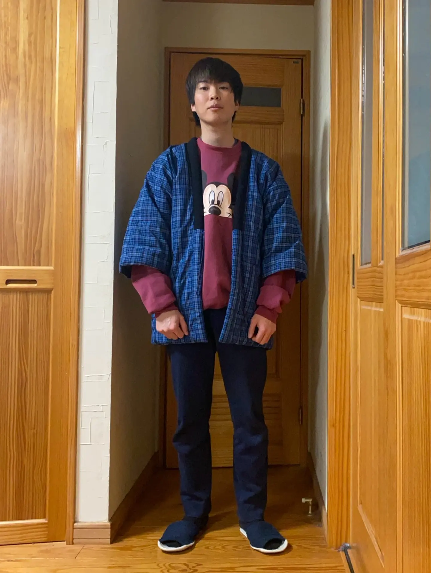 タイトルをつけるならこれだ! 56 かっこつけても、かっこよくならない😭 #おじいちゃん? #冬はこれだよね^_^半纏 #スウェットは親友 #トレーナーじゃないよ。スウェットだよby古着好きの修正