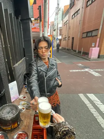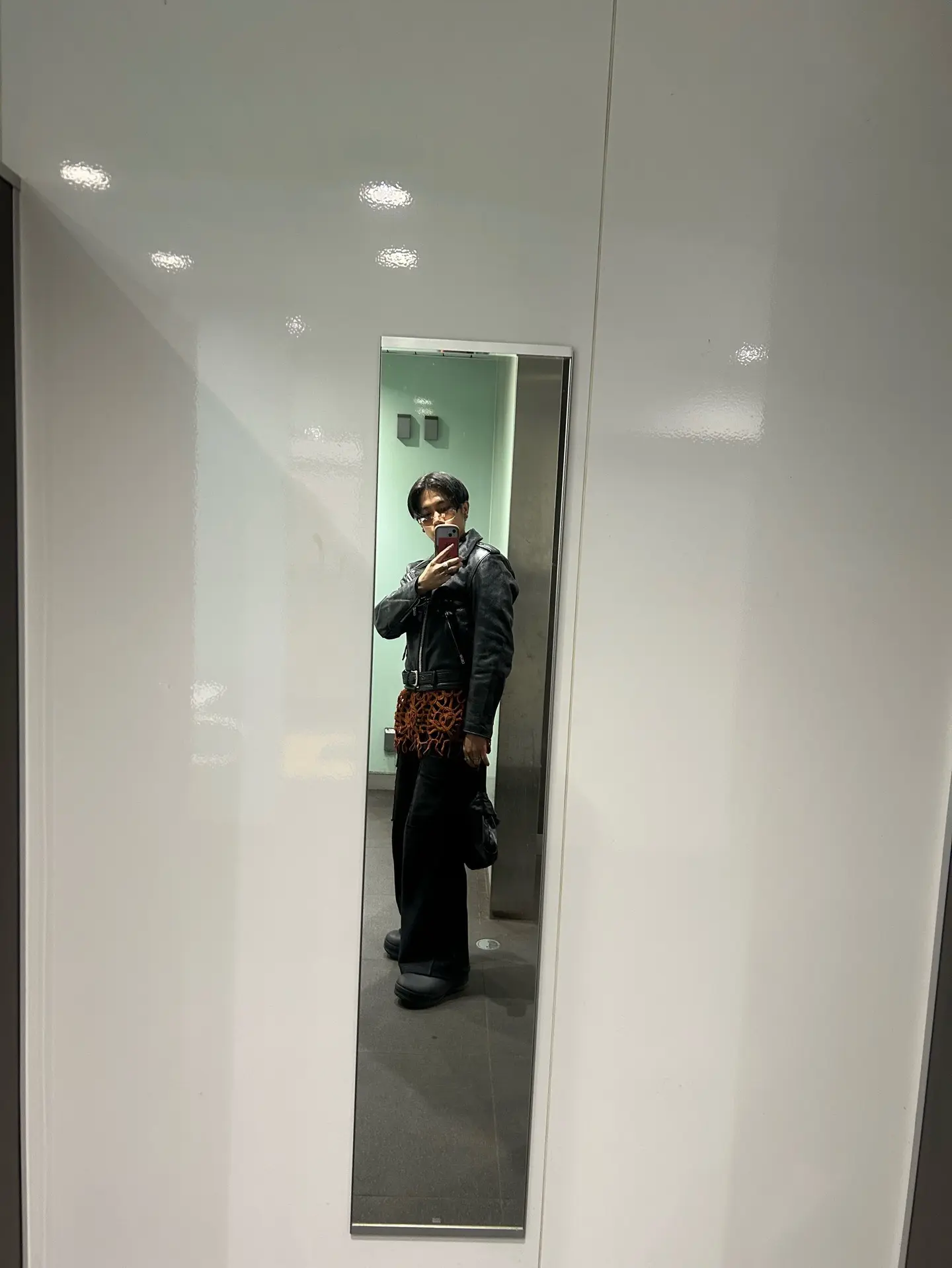 @furugi_holic #デザインニット #レザージャケット #レイヤードコーデ