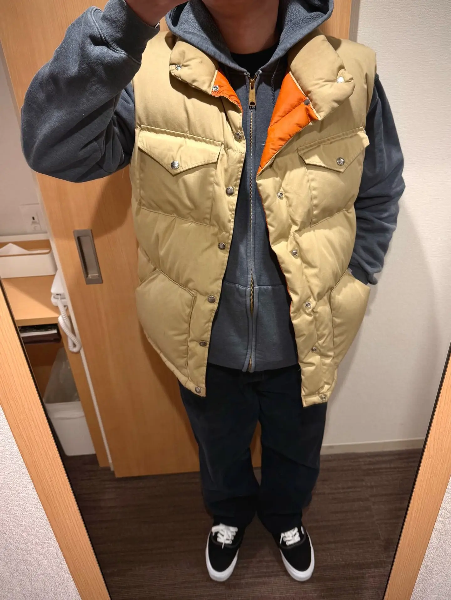 グレーのパーカー、ベージュのダウンベスト、ブラックのワイドデニム、ブラックのスニーカーを合わせたアウトドアミックスのアメカジスタイル。 もうダウンはそろそろ厳しいかなと思ったけどまだ全然寒い。 このパーカーも買ってからほとんど着れずに冬が終わってまうところやった。 最近改めて思ったけど鏡で自撮りって難しいな。 なんか身体のバランスおかしい笑 ホテルとかに泊まった時くらいしか撮らへんけどもう少し練習します。 トップス:#carhartt アウター:#thenorthface パンツ:#levis シューズ:#vans #メンズコーデ #メンズファッション #アメカジ #冬コーデ #古着 #服好きな人と繋がりたい #ファッション好きな人と繋がりたい #オシャレさんと繋がりたい #キレイめカジュアル #大人カジュアル #今日のコーデ #古着ディグ #パーカー #ダウンベスト #ブラックデニム #スニーカー