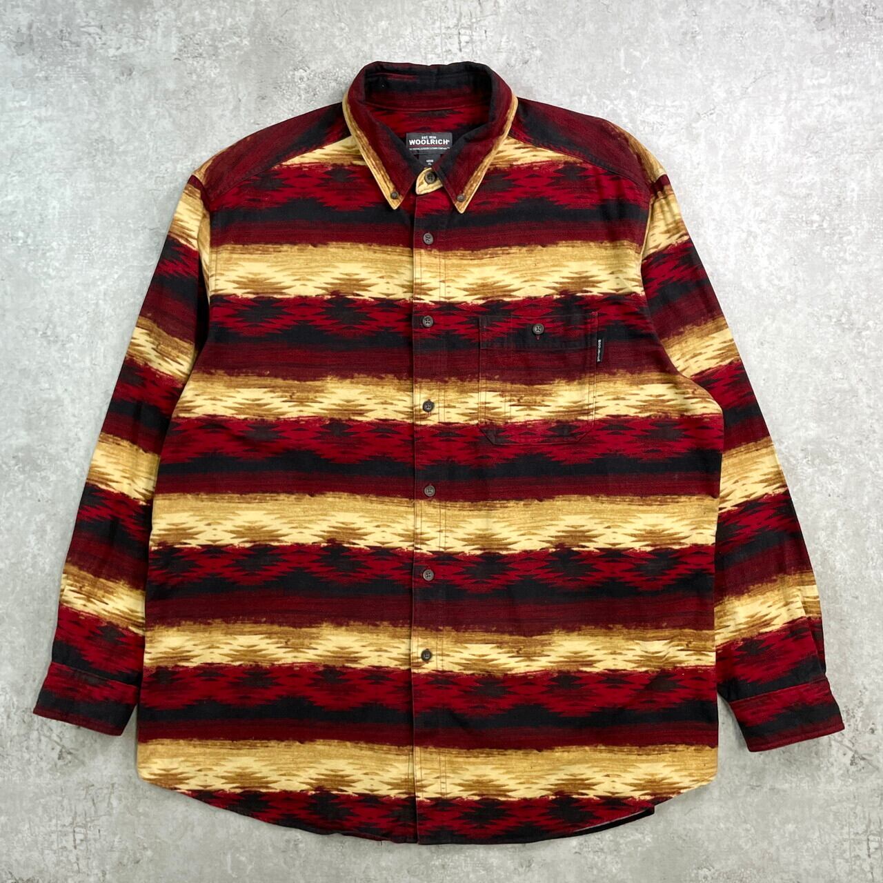 WOOLRICH ウールリッチ ネイティブボーダー プリントネルシャツ メンズXL相当