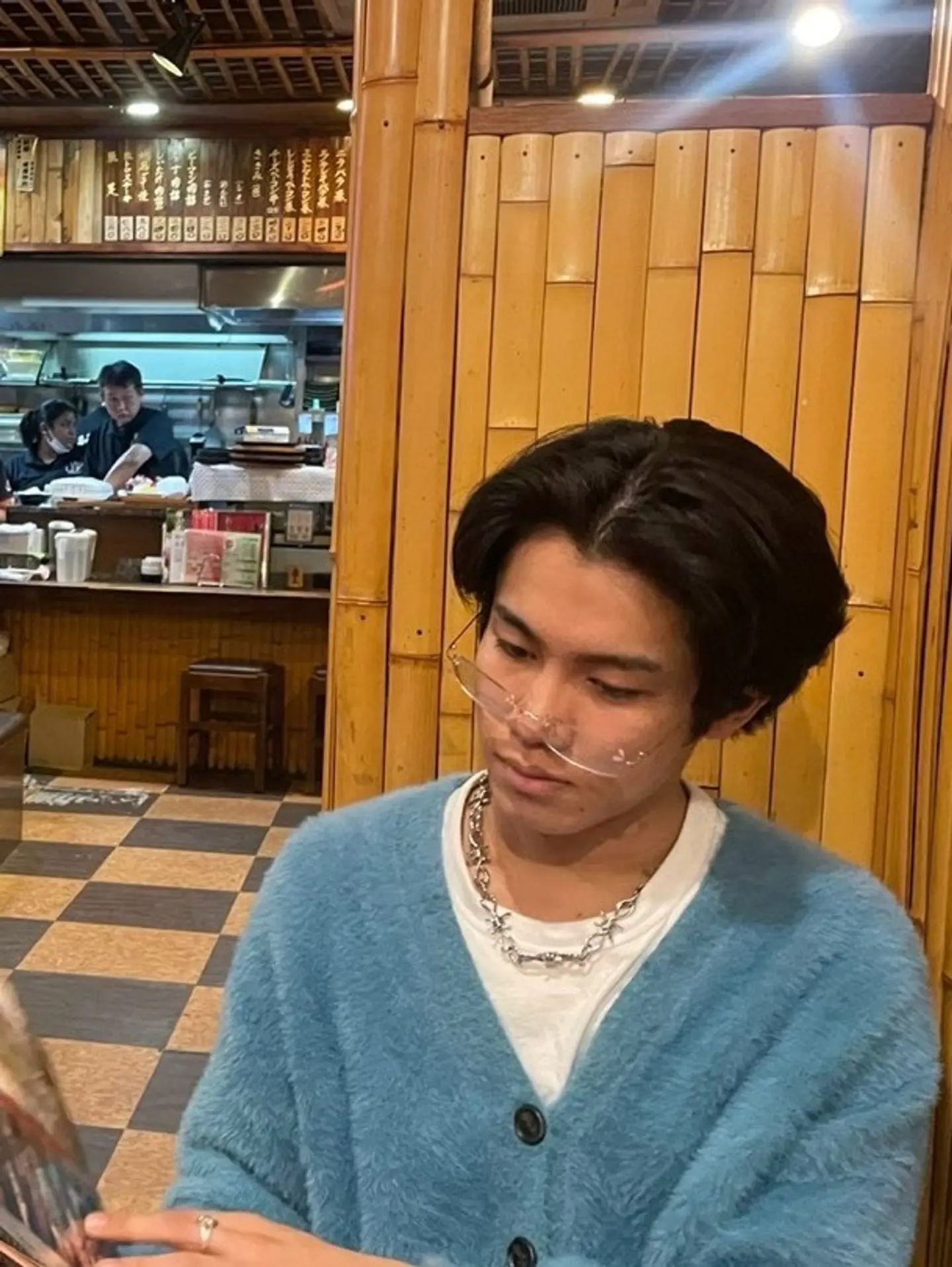 🩵🩵🩵 @furugi_holic #モヘアカーディガン #カーディガン #ハーフパンツ #スニーカー #リムレス