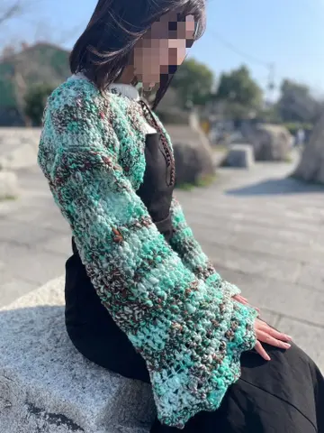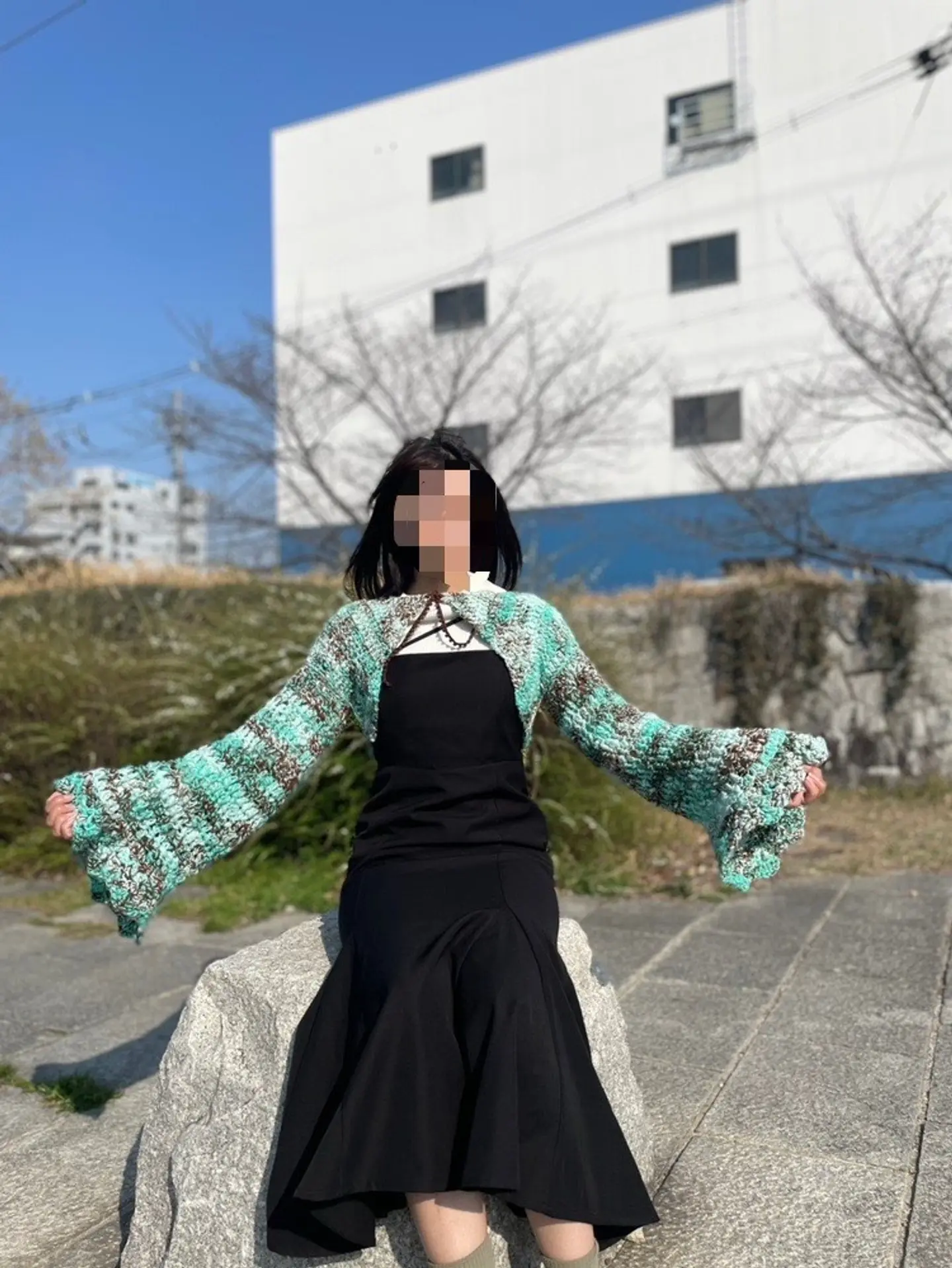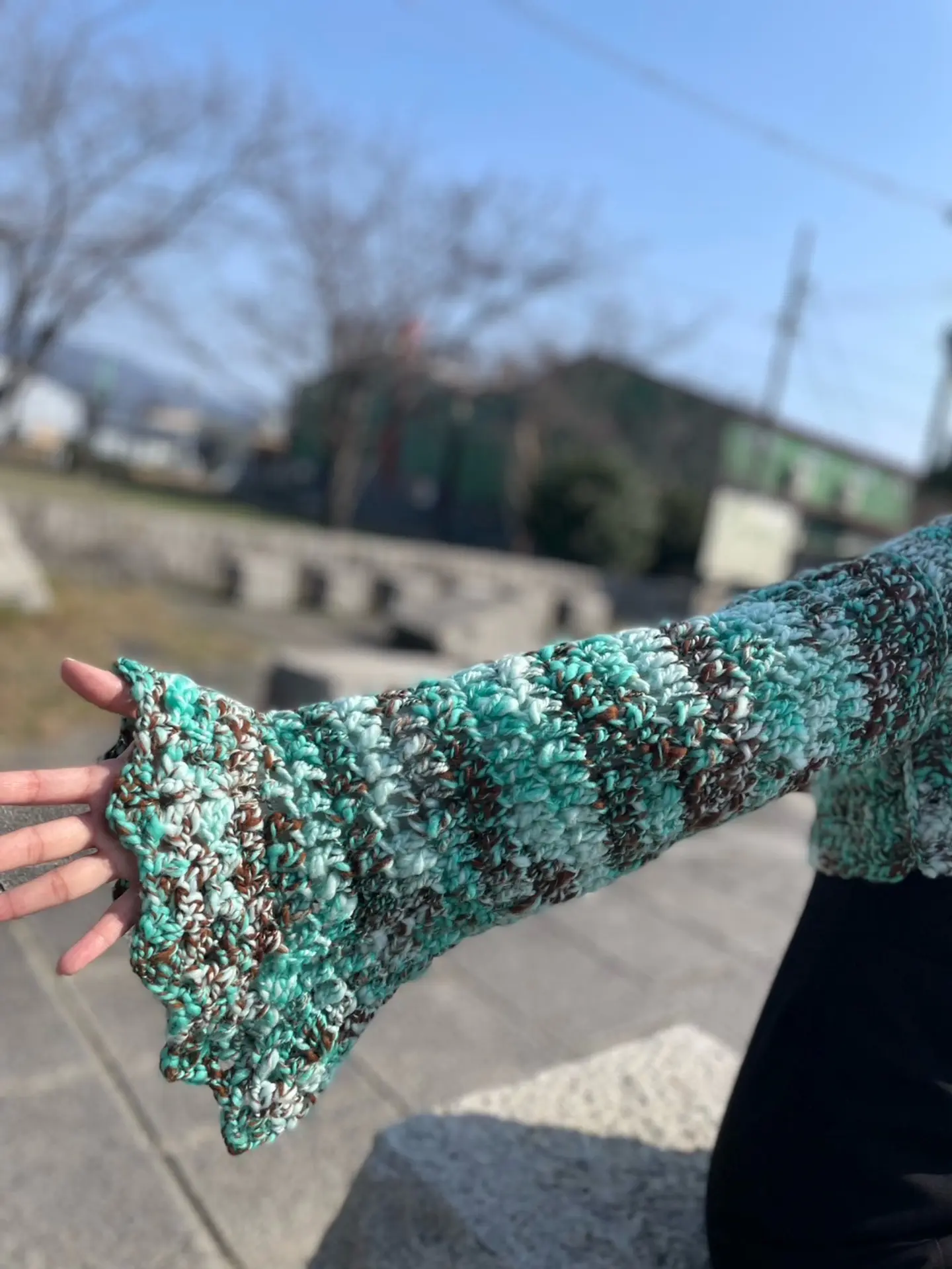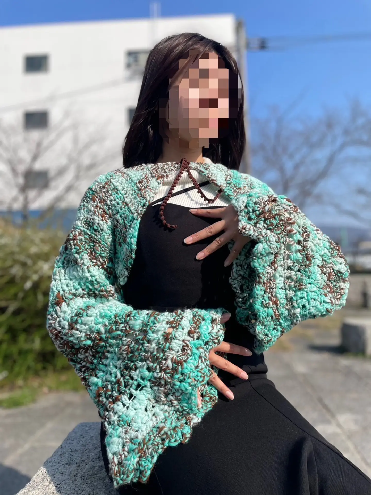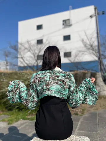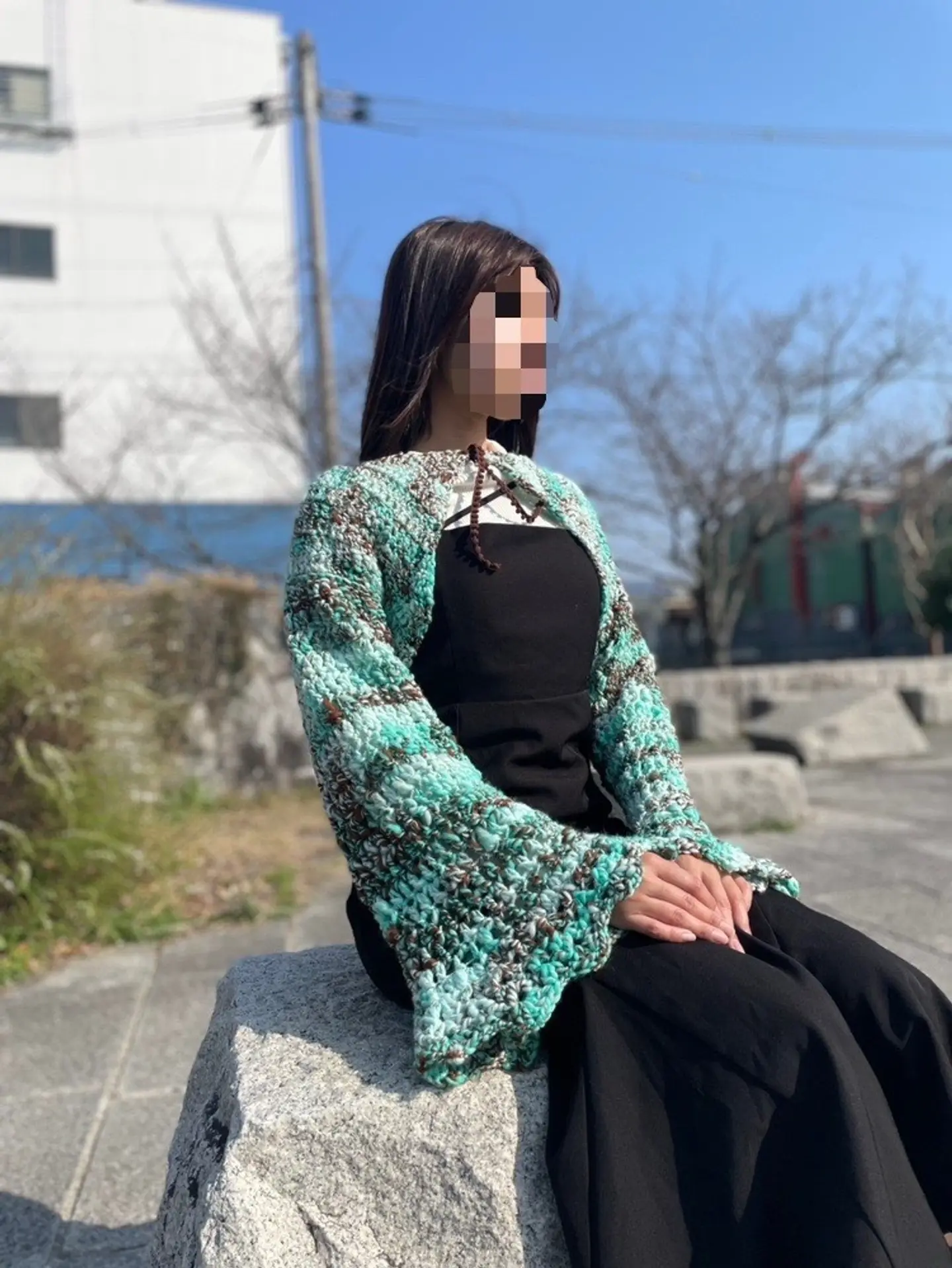 ■ハンドメイドチョコミント柄のボレロ、ショートカーディガン! ウール素材で柔らかく、温かい着心地が魅力です。 シンプルなトップスやワンピースと合わせて、カジュアルスタイルを楽しんでください! #ふくしるべのカーディガン #ハンドメイド
