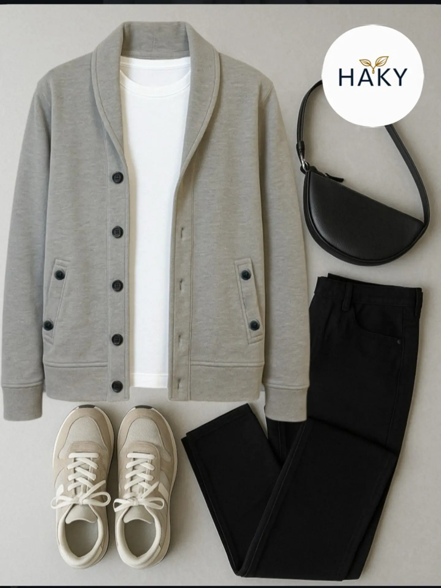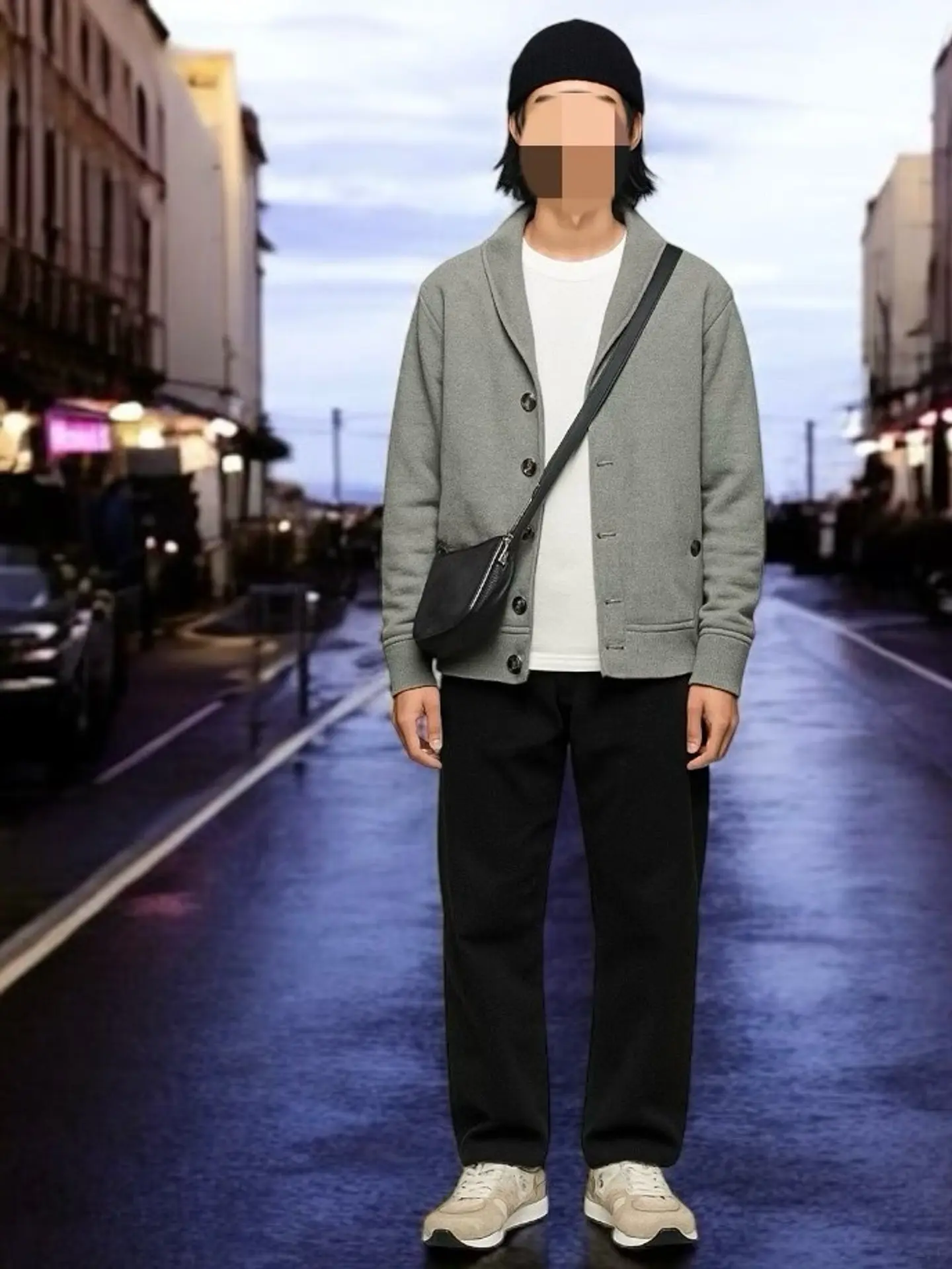 「ゆる×きれいめ」大人カジュアルコーデ グレーカーディガンを主役に、 白T×ブラックパンツでクリーンにまとめた王道コーデ。 足元はベージュ系スニーカーで柔らかさをプラス。 黒のショルダーバッグで全体を引き締めて、 抜け感のある都会的スタイルに仕上げました。 休日のカフェ巡りや、 ちょっとしたお出かけにもぴったりな着こなし◎ ⸻ カーディガン:グレーショールカラーカーデ インナー:白クルーネックTシャツ ボトムス:ブラックスラックス 靴:ベージュ×ホワイトスニーカー バッグ:レザーショルダー #カーディガンコーデ #大人カジュアル #きれいめ男子 #メンズコーデ #ナチュラルファッション #モノトーンコーデ #春服コーデ #秋服コーデ#古着 storefront古着屋HAKY @haky #カジュアル