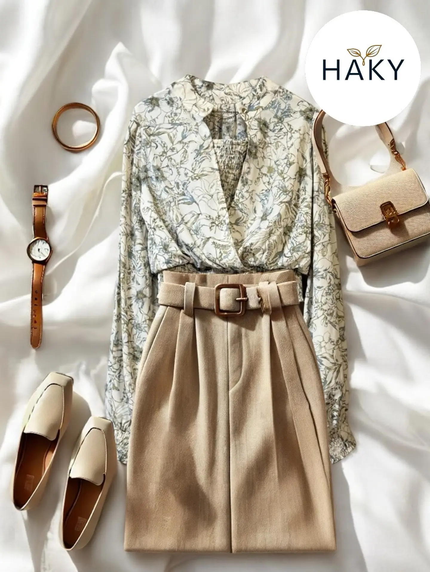 ふんわりシルエットで魅せる、大人のシンプルコーデ 花柄ブラウスに、 ベージュのハイウエストパンツを合わせた 洗練されたナチュラルスタイル。 シンプルだけど、シルエットと素材感で魅せる。 余計なものを削ぎ落とした、大人の上品カジュアル。 ⸻ item tops:花柄ブラウス bottoms:ベージュワイドパンツ(ハイウエスト) ⸻ #大人カジュアル #シンプルコーデ #白ブラウスコーデ #フラットレイコーデ #ナチュラルファッション #春コーデ #オフィススタイル@haky #古着 #レディース #きれいめカジュアル #ワイドパンツコーデ&si;古着屋HAKY #古着