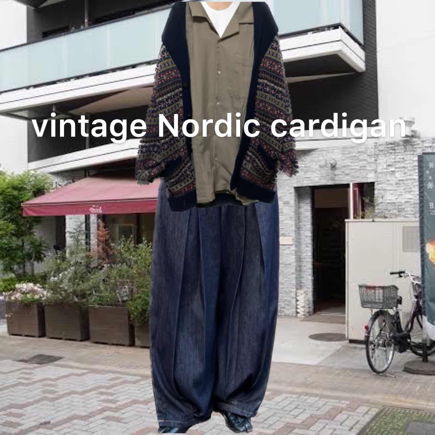 90s vintage Nordic柄 ピュアウール梱包 ショールカラーカーディガン
