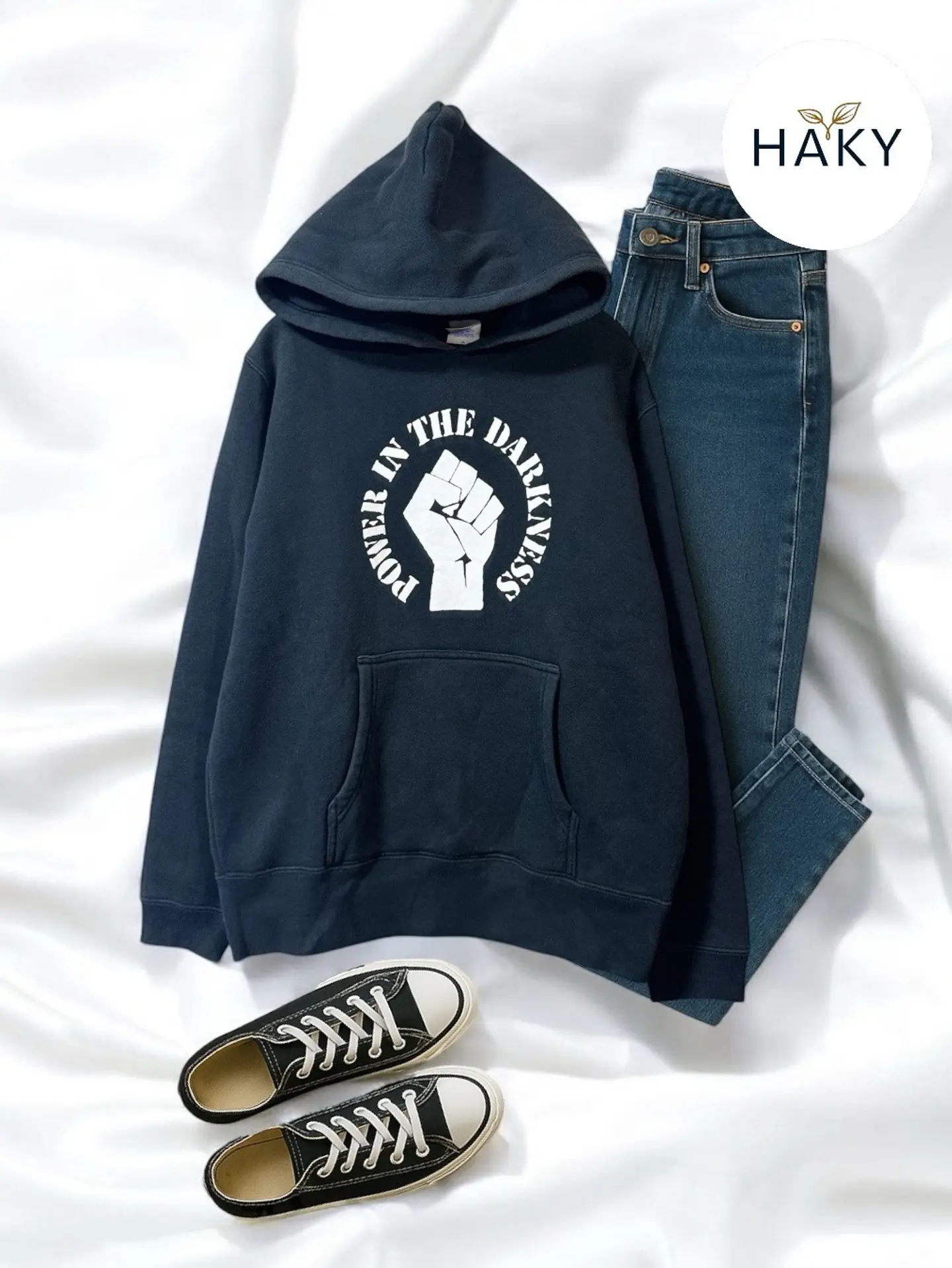 \ロゴフーディでつくる、王道ストリートカジュアル/ インパクトのあるロゴとシルエットで 一枚でキマるフーディ。 合わせるのは、やっぱりデニムとスニーカー。 気取らず、でもちょっとアツくなれる。 そんな1日を着こなす、シンプルな3点セット。 ⸻ ⭐︎item⭐︎ tops:ロゴプリントフーディ(POWER IN THE DARKNESS) bottoms:ブルーデニムスキニーパンツ shoes:ブラックローカットスニーカー(白ソール) ⸻ #ストリートコーデ #パーカーコーデ #ロゴフーディ #シンプルカジュアル #フラットレイ #今日の服 #デニムスタイル #古着ミックス #HAKYコーデ #古着 storefront古着屋HAKY