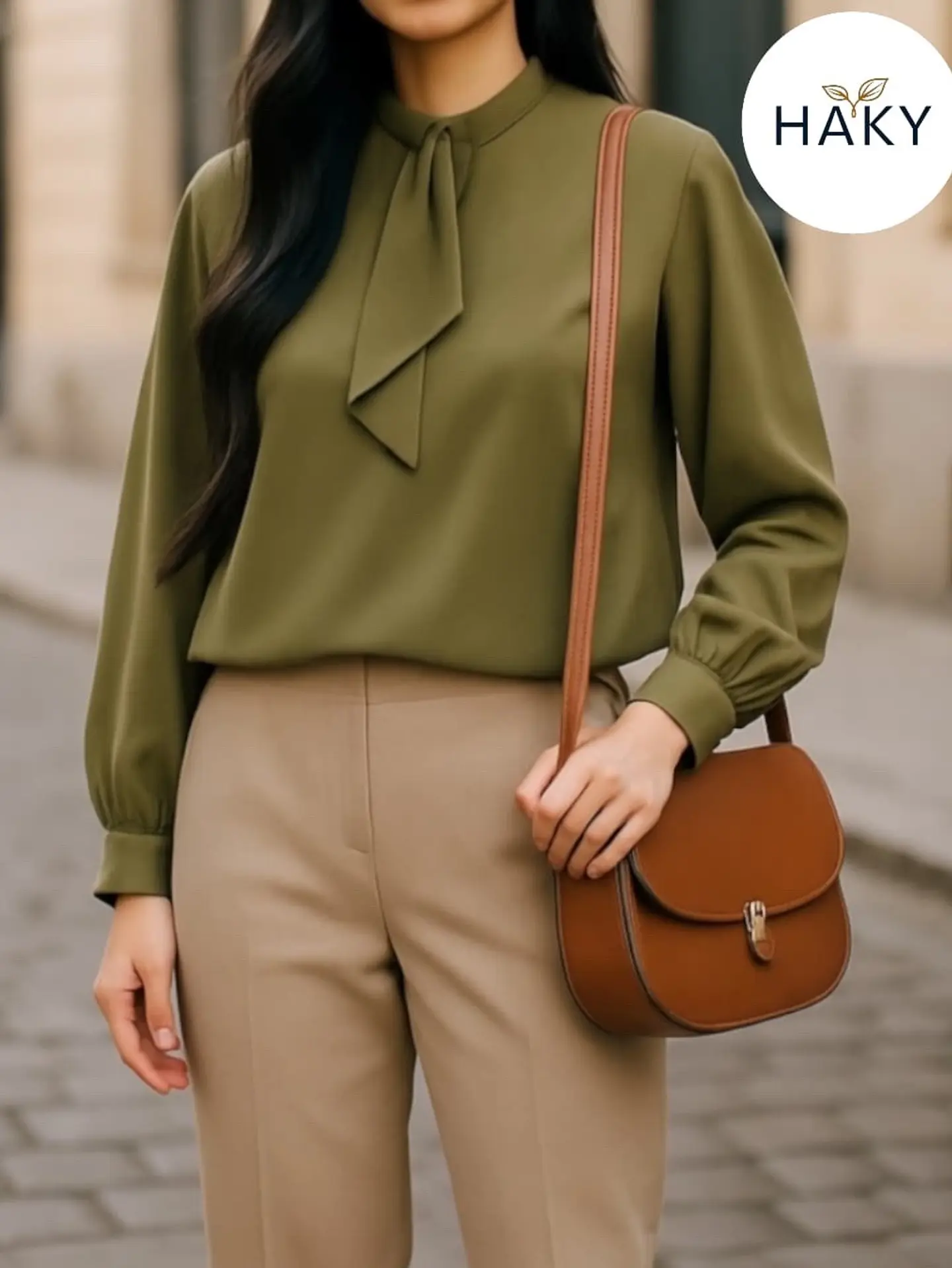\きちんと感と柔らかさのいいとこ取り/ カーキのボウタイブラウスで上品に、 ベージュパンツで抜け感をプラス。 かっちりしすぎないのに、きれい見えが叶う 大人のきちんとカジュアル。 お仕事にも、おでかけにも。 どこへでも馴染む頼れるコーデ。 ⸻ ⭐︎item⭐︎ tops:カーキボウタイブラウス bottoms:ベージュセンタープレスパンツ bag:ブラウンショルダーバッグ ⸻ ※イメージ画像です。 #きれいめカジュアル #ボウタイブラウス #大人コーデ #オフィスカジュアル #フラットレイ #今日の服 #シンプルコーデ #HAKYコーデ storefront古着屋HAKY #古着