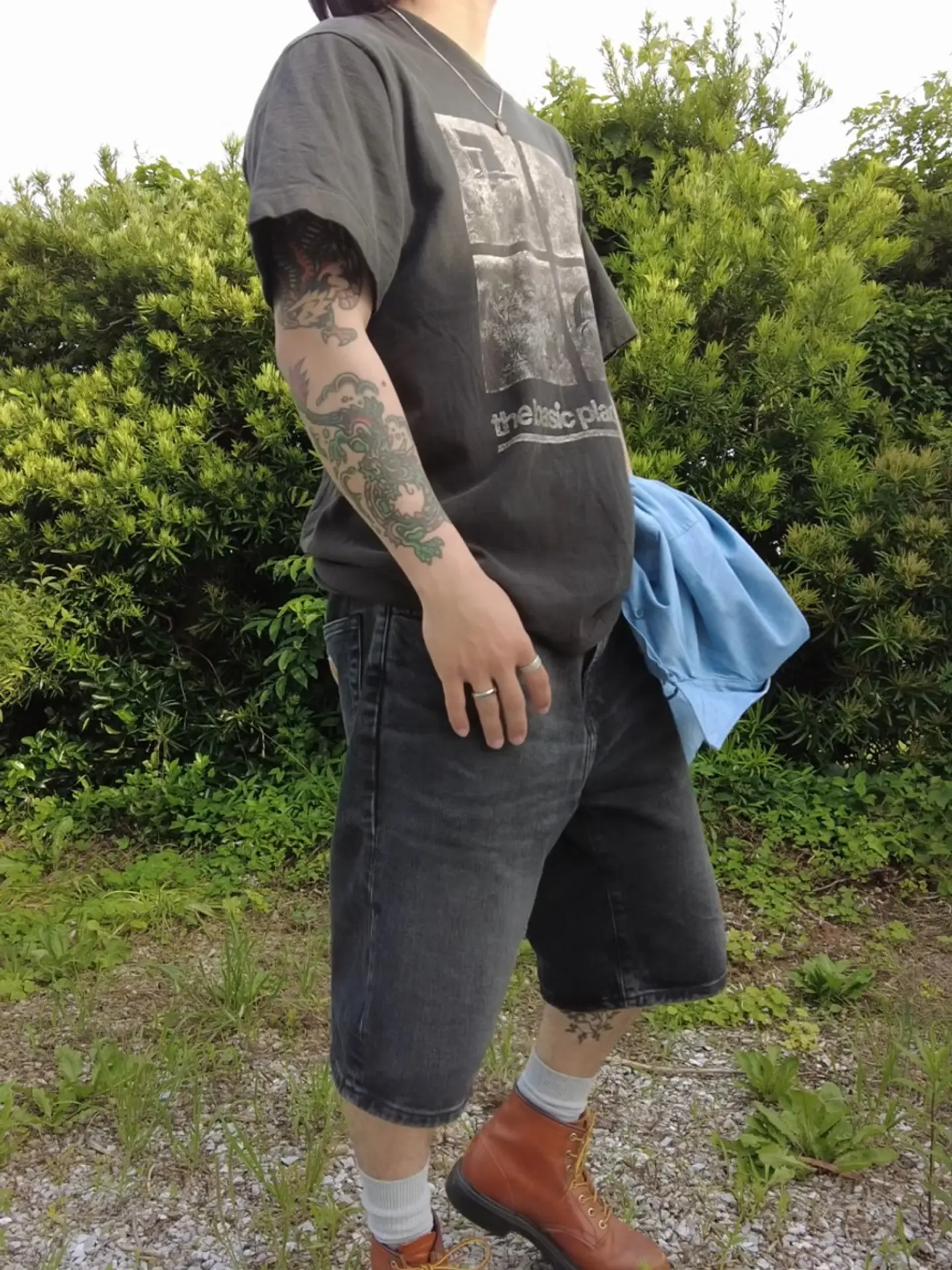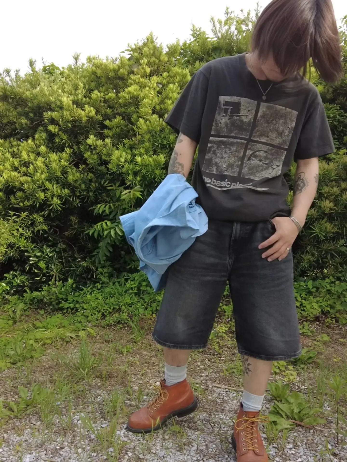 「シンプルを着こなす」 U.S. NavyのシャンブレーシャツにCarharttのショーツ。 一見シンプルですが、シャツの間から見えるプリントやRed wingのブーツでまとめることにより着こなしを演出。 暑い季節でもインナーだけでなく、薄手のシャツなどを羽織ることによって屋内と屋外で違った印象のコーディネートを楽しむことができます。 storefrontBuddy used&vintage clothing これからの季節もTシャツだけでなく、様々なアイテムの組み合わせを楽しみましょう。 #surift2025