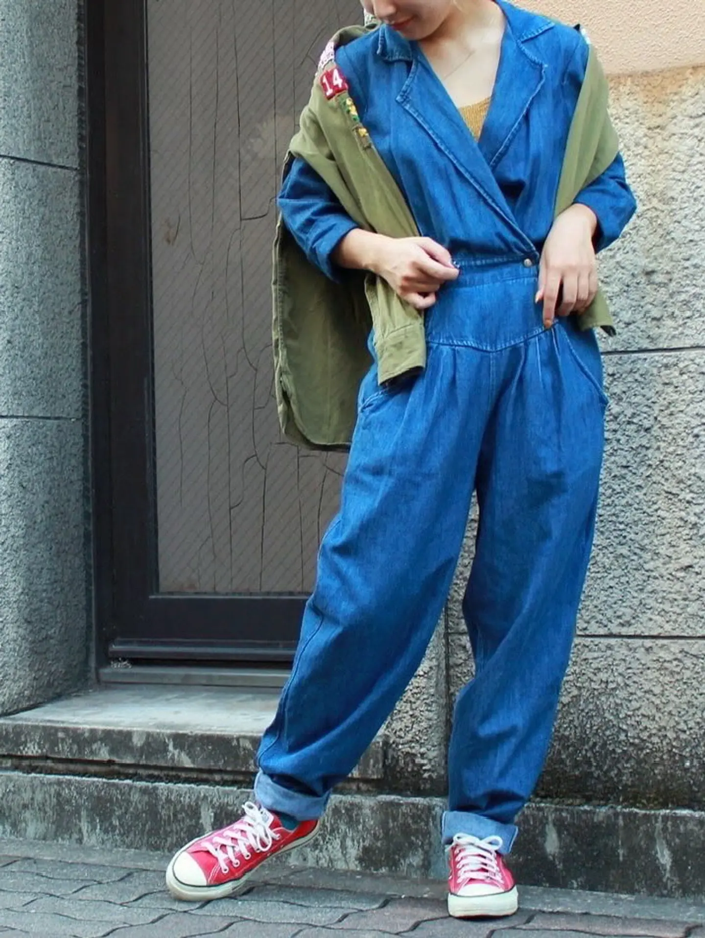 「レディースアメカジスタイル」 メンズライクな組み合わせですがアイテムのシルエットやデザインで女性らしさを引き出したコーディネートです。 シャツはワッペン等の可愛さを活かしてサッと肩にかけて。コーディネートのアクセントにもぴったりです。 ・80's denim jumpsuit ・vintage boy scout shirt ・MADE IN USA converse #surift2025 #アメカジ #vintage #80s #デニム #カジュアル #60s storefronthumming @humming