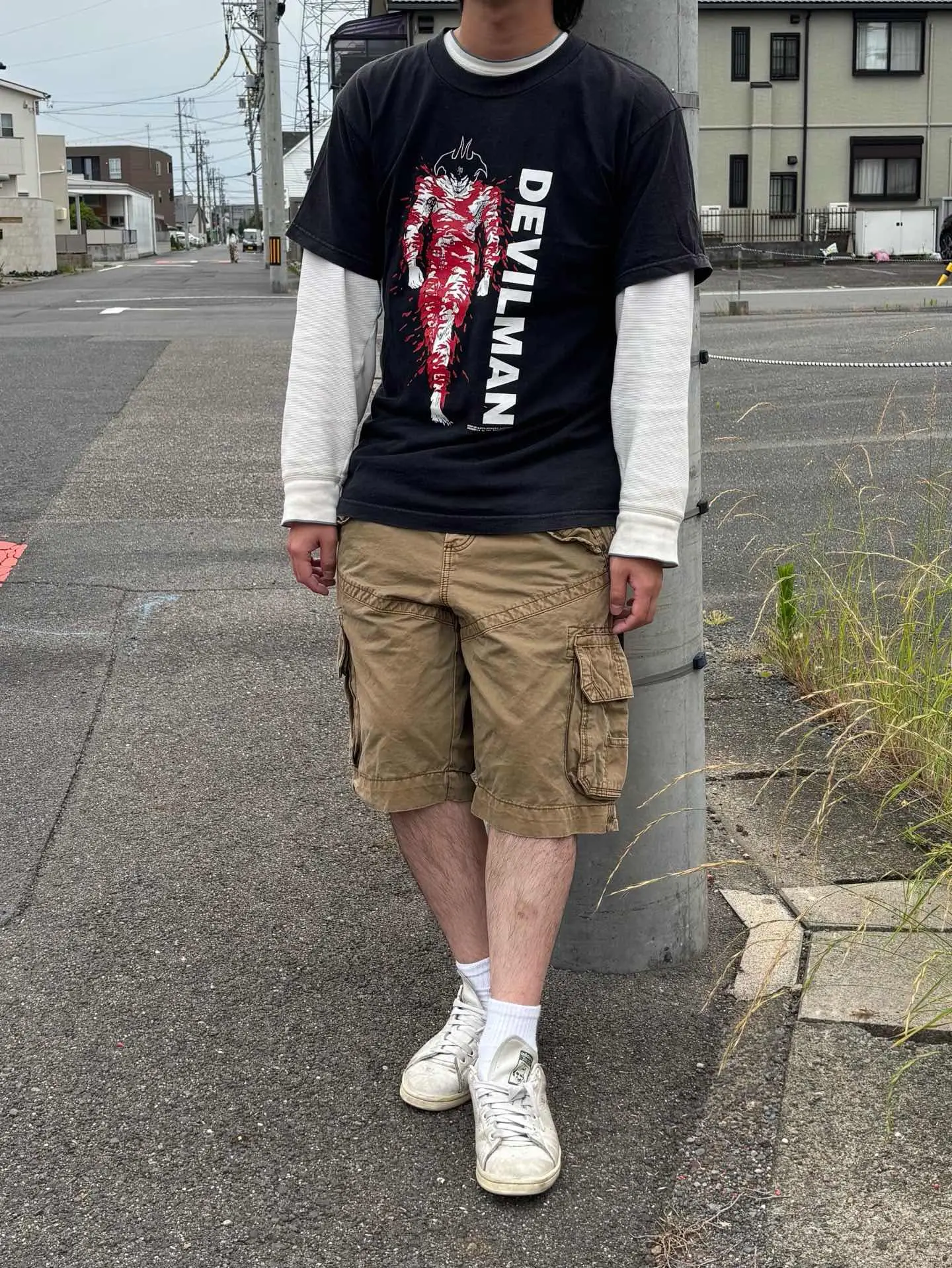 「表裏一体」 一枚目 tops:90s DEVILMAN tシャツ pants:unknown カーゴショーツ 二枚目 tops:00s rimp バンドtシャツ pants: 00s stussy ワークギアサンプリングデニム 一枚目は少し裏原を意識してサーマルに個人的に好きな デビルマンのTEE少しナードなエッセンスを入れるのが個人的に好きです。 二枚目はy2kとストリートの融合を意識したコーデ どちらも00sのアイテムでまとめることでバランス良く纏ってくれていると思います。 どちらもどことなくいなたくてちょうど良い塩梅で組めたと思います。 まさに表裏一体同じストリートの雰囲気を汲んだコーデとなっております。#vintage #アメカジ #90s #ストリート #80s #古着 #used #fashion storefronttt.vintage #surift2025