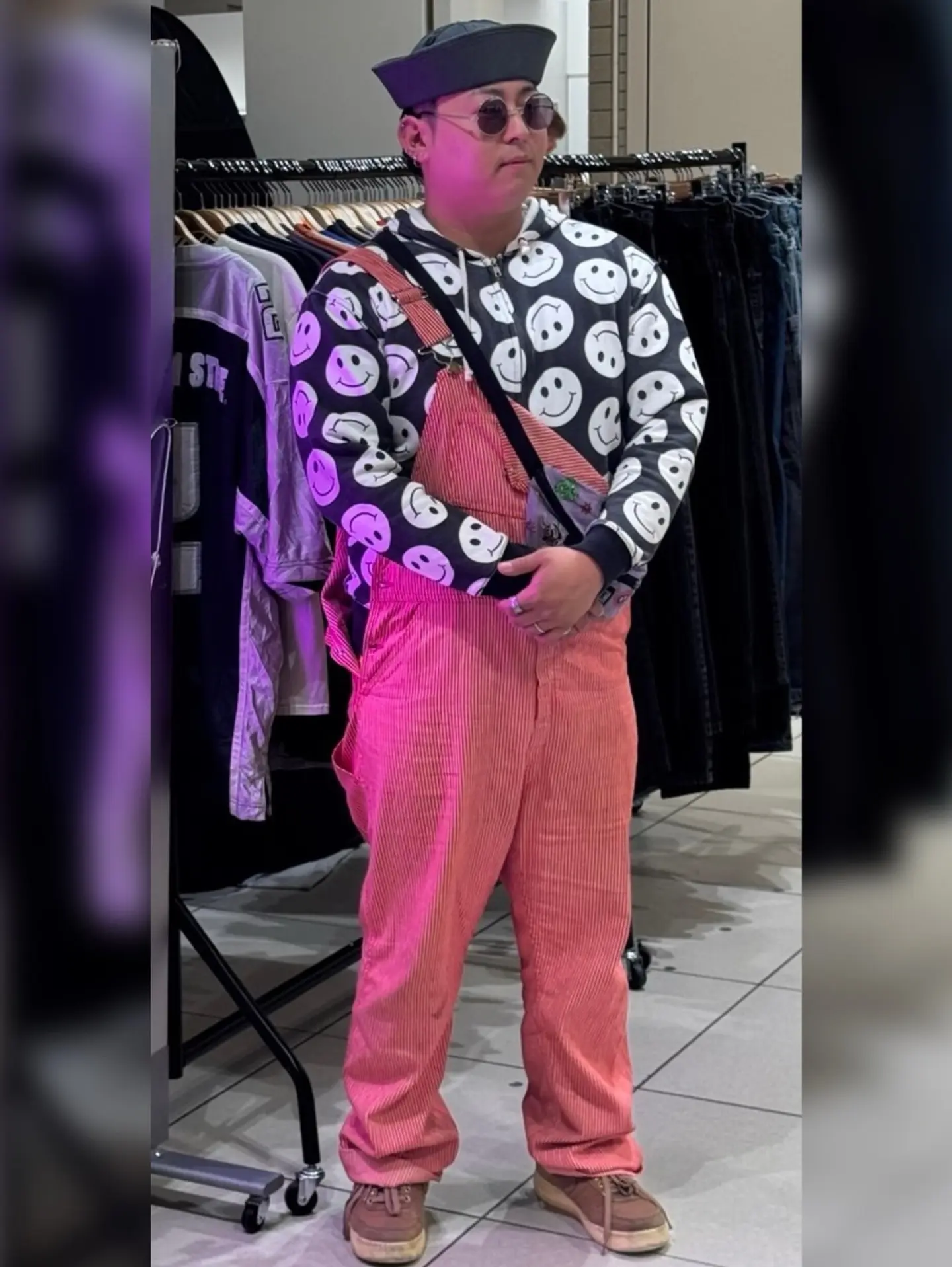 【ニコニコぶっとびコーデ】 80's US NAVY SAILOR HAT 後染め 70's OshKosh オーバーオール ヒッコリーストライプ LIFE'S A BEACH スマイリー フルジップパーカー BUTTSTAIN! モンスター ポーチ #surift2025 storefront#古着de行こか。彦根店