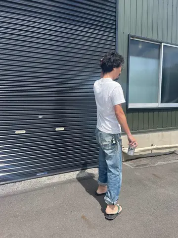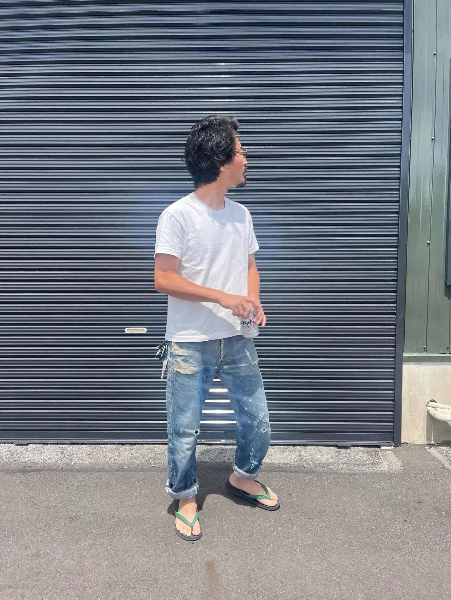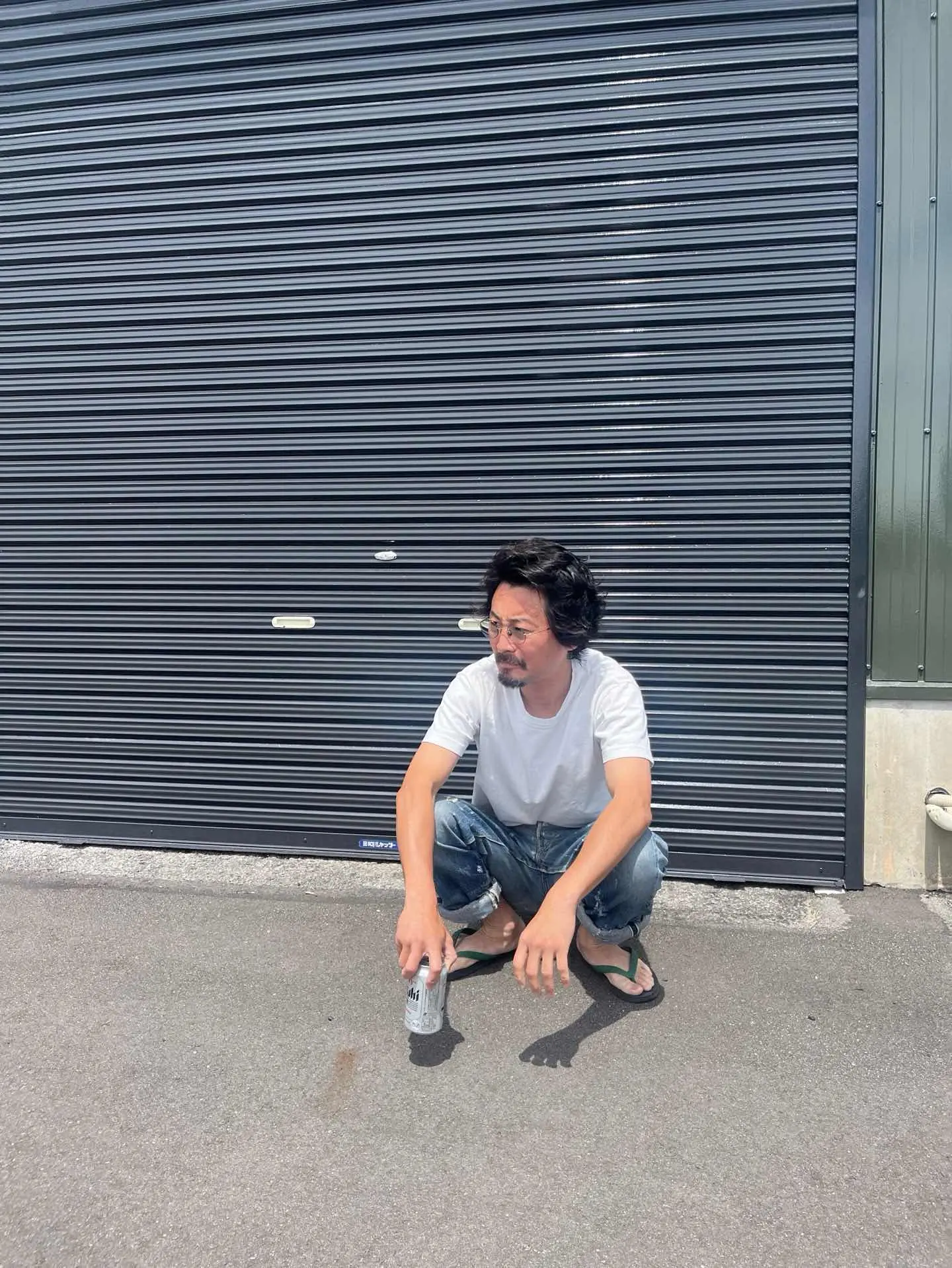 【出店スタイル】 大体ビール飲んでます。 ・YAKETY YAKの無地T ・501xx ・HUUKUのビーサン ・アサヒスーパードライ #surift2025 storefront古着屋まっぺん