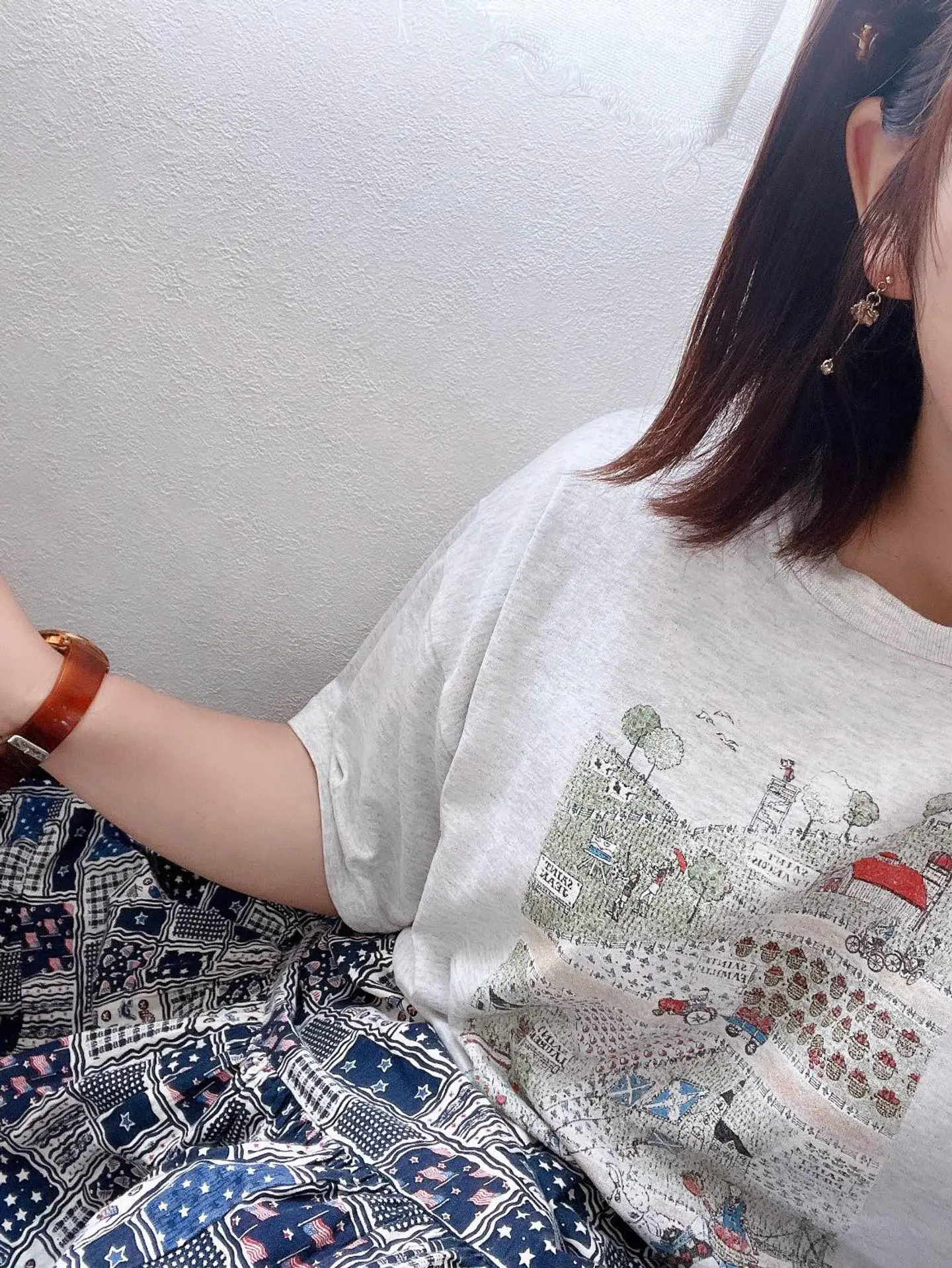 カントリーなデザインのお洋服たちで カジュアルガーリーな夏コーデに♡ tシャツ storefrontWinK スカート storefront古着屋メルティードール(usedshop meltydoll) ピアスはハンドメイド品♩ べっこうの腕時計はニコアンドで、 べっこうのヘアクリップとリンク◎ #宮崎古着屋 #都城古着屋 #宮崎 #都城 #鹿児島 #ヴィンテージ #vintage #ガーリー #古着 #used #fashion #カジュアル #レトロ #カントリー #古着好きな人と繋がりたい #tシャツ #スカート #古着女子 #アメリカ古着 #古着屋wink