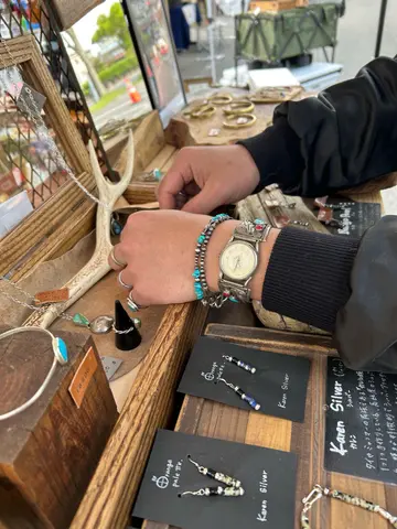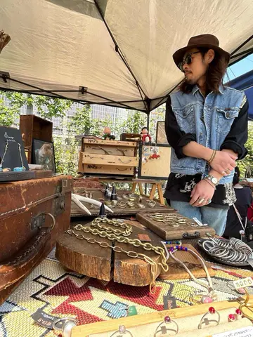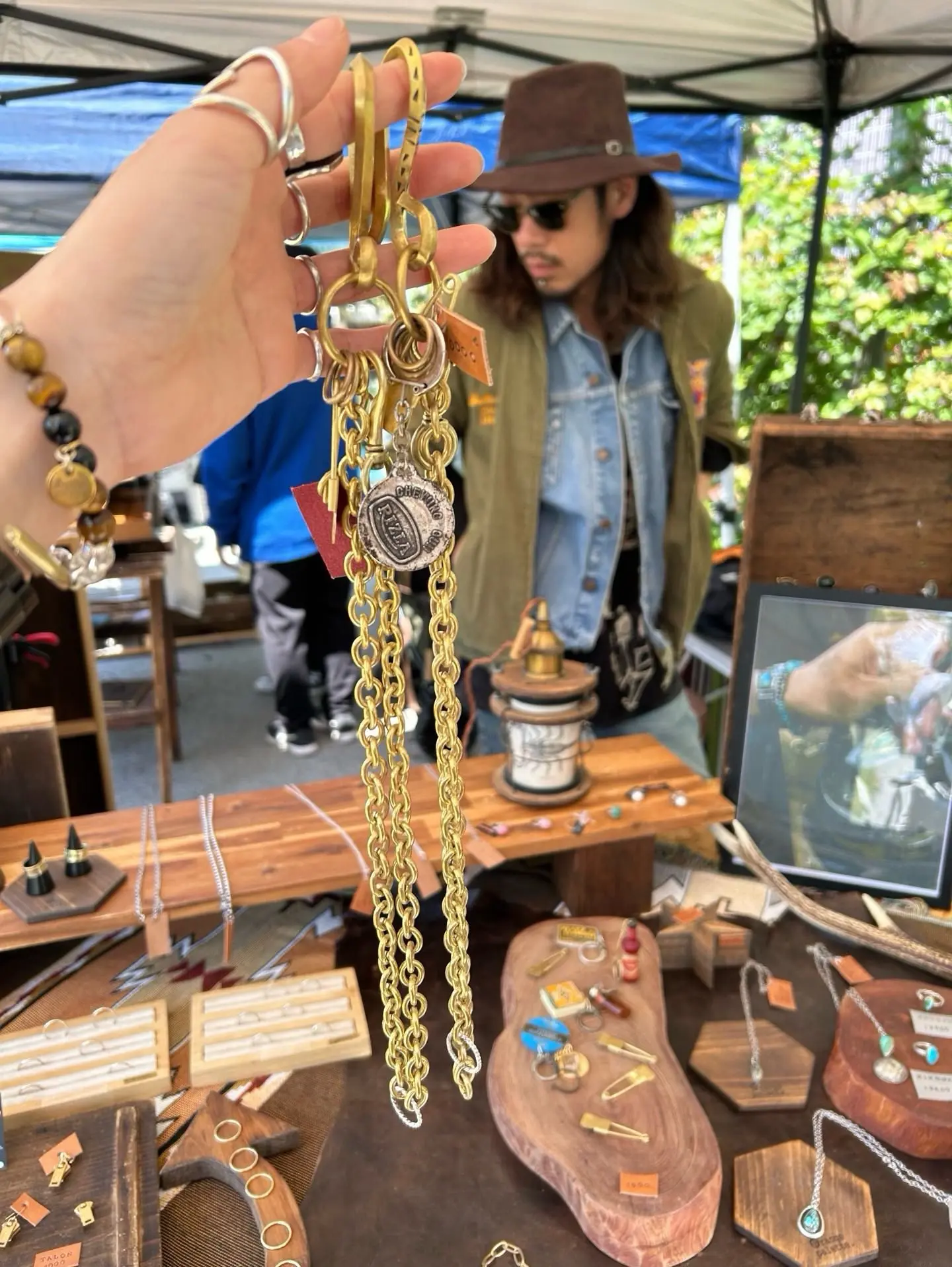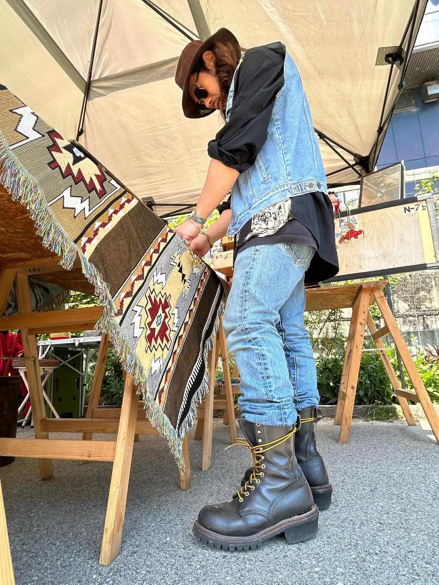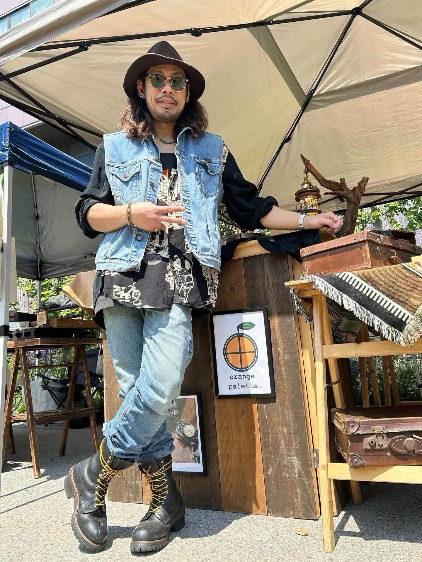 [ Denimbest @ marche coordinate ] ーとある春のイベントでー アクセサリーは全て当店で製作した物を着用。 Best:Wrangler Jewelry:Orange palette. Boots:REDWING #surift2025 #vintage #古着 #used #fashion storefrontOrange palette.