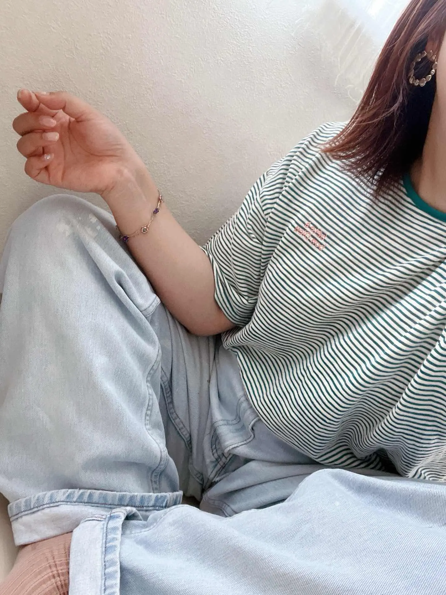 夏の平日。ラフコーデ♩ だぼっと履けてペイントがかわいいデニム// silvertab バギータイプ! リーバイスのデニムパンツ storefrontWinK アクセサリーはプチプラ! tシャツのピンクロゴと、 ブレスレットのピンクお花と、 靴下のピンクをリンク♡ #vintage #デニム #カジュアル #古着 #used #fashion #夏コーデ #宮崎 #都城 #宮崎古着屋 #都城古着屋 #レディース古着 #メンズ古着 #古着女子 #デニムパンツ #リーバイス #Levis #シルバータブ #silvertab #古着コーデ #古着屋