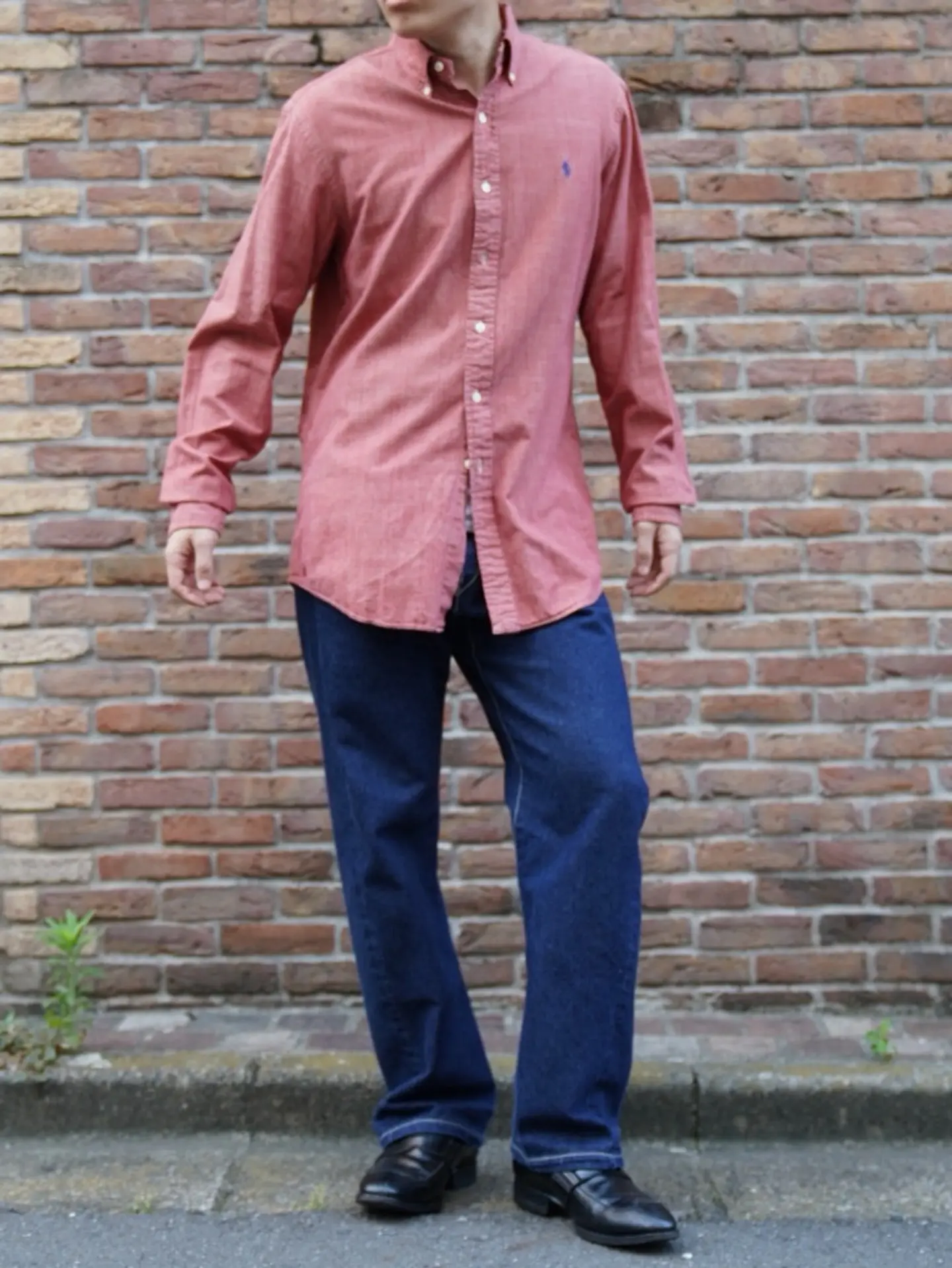00s ラルフローレン 刺繍ロゴ ギンガムチェック ボタンダウンシャツ