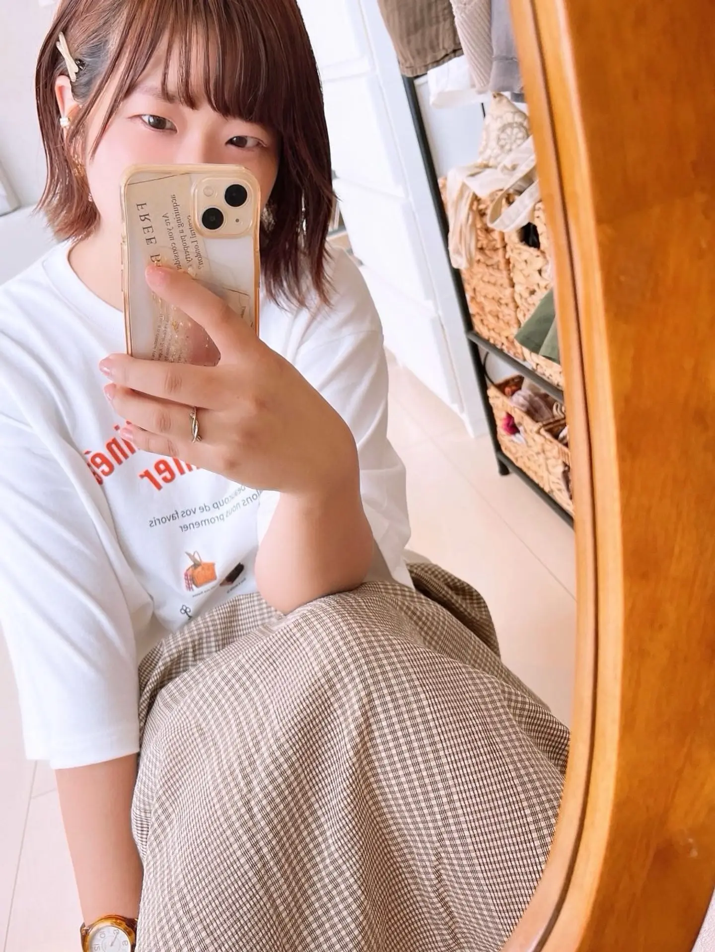 tシャツはSM2のもの◯ アクセサリーはハンドメイドとプチプラ! 腕時計はnicoand...♡ チェックスカート storefrontWinK 髪をミディアムくらいに伸ばそうと 思ってるんだけど、こう見ると ボブもやっぱりすきだなー。 #vintage #シンプル #カジュアル #ガーリー #古着 #fashion #used #アメリカ古着 #チェックスカート #チェック柄 #プリントtシャツ #夏コーデ #ボブ #古着屋wink #古着女子 #都城古着屋 #宮崎古着屋 #レディース