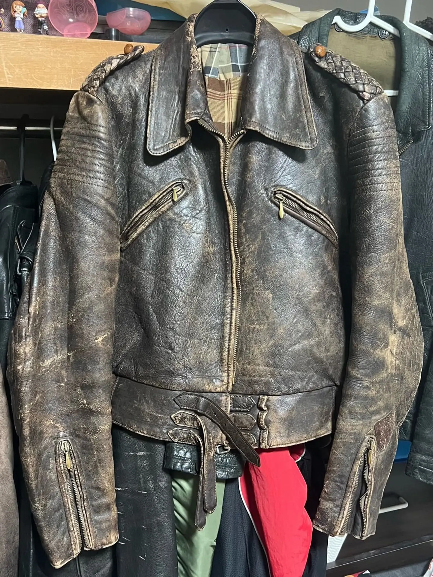1930年代前半製と思われる、Ritsch名義の幻級の超短丈ユーロモーターサイクルジャケット。 タグは無しながら、構造・ZIP・ディテールすべてがRitsch最初期と一致する博物館級の個体。 同年代同系統でも球数が少ないのもに そのうちritsch製の同ディテール個体は更に絞られて 更に着用可能、ZIP全稼働、リペアほぼなしは1桁しかない可能性も。 日本市場ではほぼ見られない幻クラスの逸品。 orig ritschのこのタイプは型番展開ではなく手作業調整、ロットの構造差があるため全く同じ個体は基本的に存在しない。故に一点物の可能性もあり。 30s Germany orig ritsch leather jacket. 80s laceup shirt. 90〜00s POLO jeans company jeans. LVC 1937 裏地のチェック地と腕裏の裏地がサテンで作られてることから当時のオリジナルそのまま残っている可能性大。 機械化不十分で半手作業の時代にコストかけてもそう作られていることから 高級志向or専用設計の大量生産じゃない逸品の可能性。 恐らく元々タグ無し個体。 比較的壊れやすいコの字も全部生きてる。目立ったダメージもなし 当時の上位モデルに付くコの字留め、八の字ジップ 30年代前半から中盤の細3連ベルト 当時の特徴の編み込みエポレット、横リブ、チェック裏地、超短丈、首を守る大きい襟に左内側のポケットがあって ジップも全て完動。 ほんとにアーカイブレベル。 30年代の袖ZIP付きライダース自体数が少ない。 まじでやばいだろーーーーー これが着れるジャストサイズってのがやばい #vintage #アメカジ #古着 #fashion #holic #30s #80s #90s