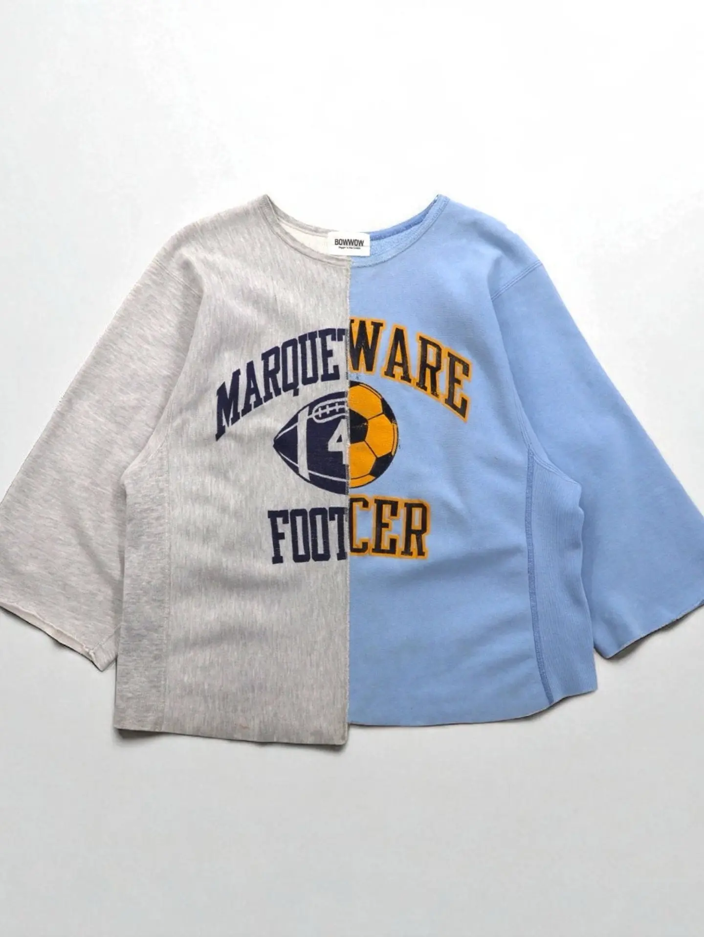 BOWWOW リメイク 再構築 リバースウィーブ カットオフ スウェット L ブルー グレー カレッジ プリント