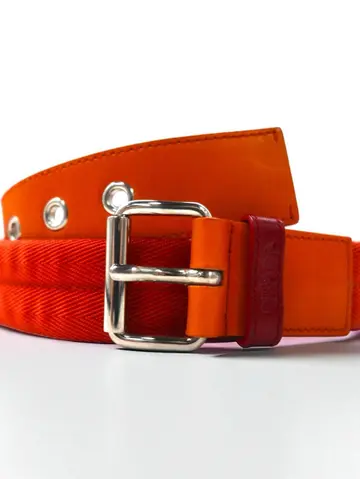 PRADA ナイロンキャンバス ベルト LOGO LOOP UTILITY BELT 38/95 オレンジ レザー切り替え 4C2855 イタリア製