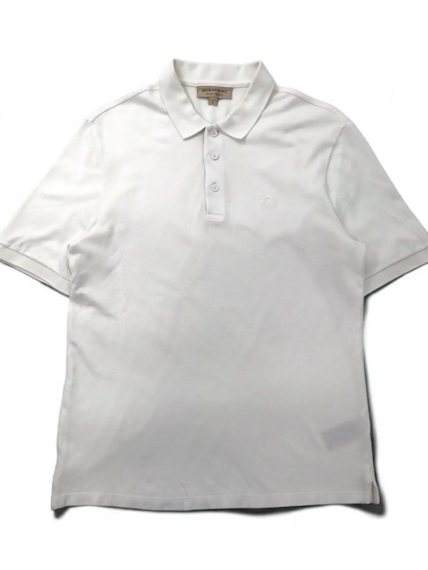 BURBERRY 現行タグ ポロシャツ L ホワイト コットン 鹿の子 ワンポイントロゴ刺繍