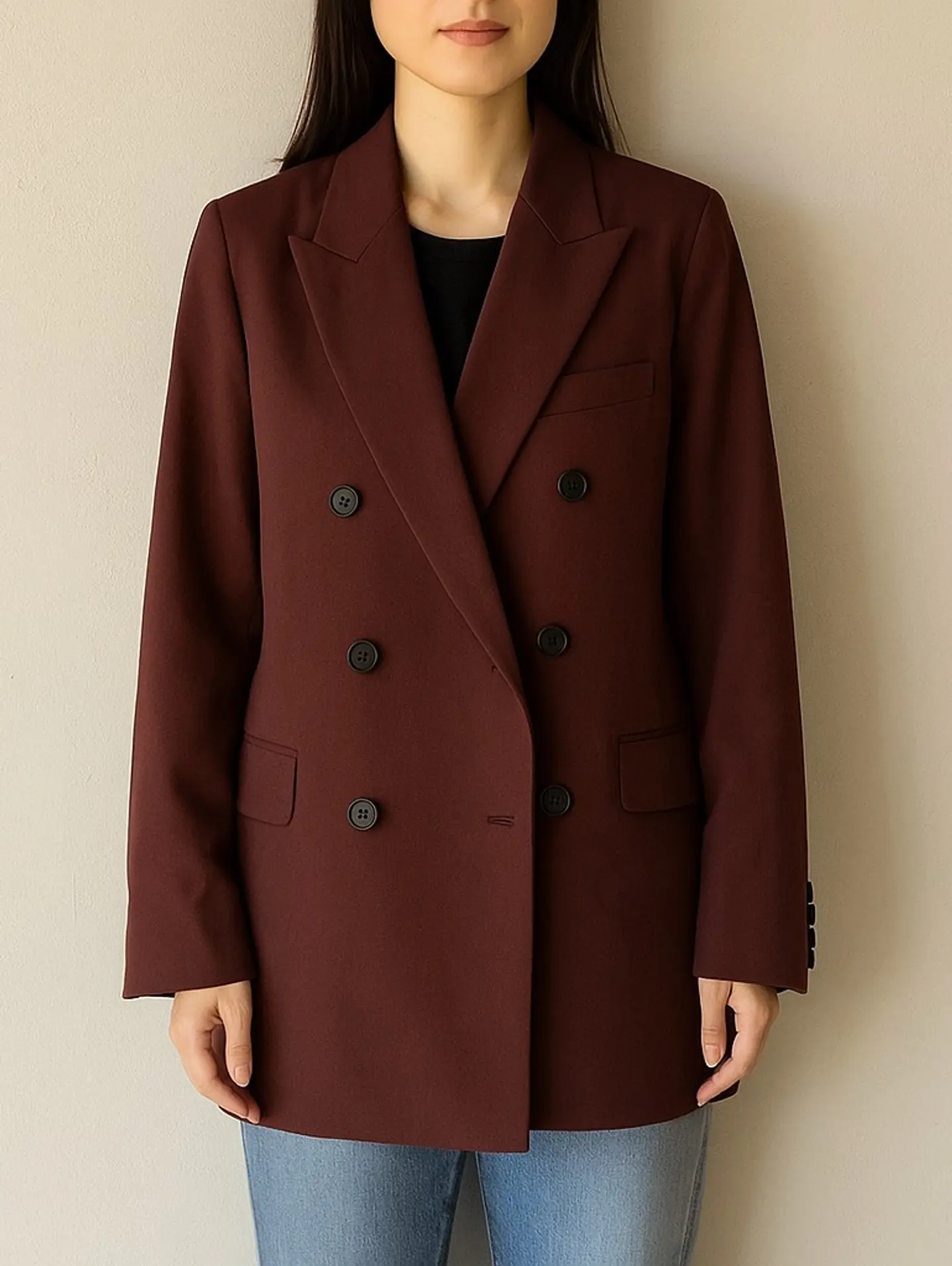 ■デザイン ウール混素材を使用したノークのダブルテーラードジャケットは、スタイリッシュで洗練された印象を与えます。 深みのあるブラウンのカラーは、どんなコーディネートにも馴染みやすく、活躍するアイテムです! ■コーディネート シンプルなブラウスやニットと合わせることで、オフィスシーンにもぴったりのエレガントなスタイルが完成します。 さらに、デニムやチノパンと組み合わせることで、カジュアルでありながらも品のある印象を演出できます。ブーツやヒールとの相性も抜群で、様々なシーンで引き立たせてくれることでしょう! #fashion #古着 #used #シンプル #ABY280