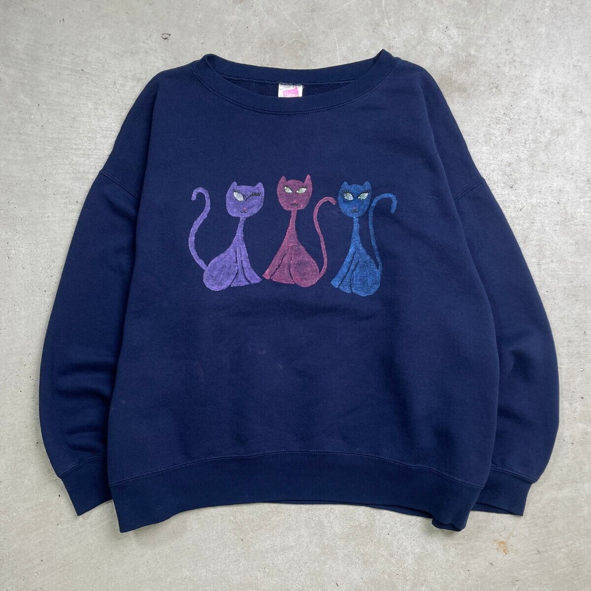 90年代 メキシコ製 Hanes HerWay ヘインズ 猫ペイント スウェットシャツ スウェット メンズ2XL