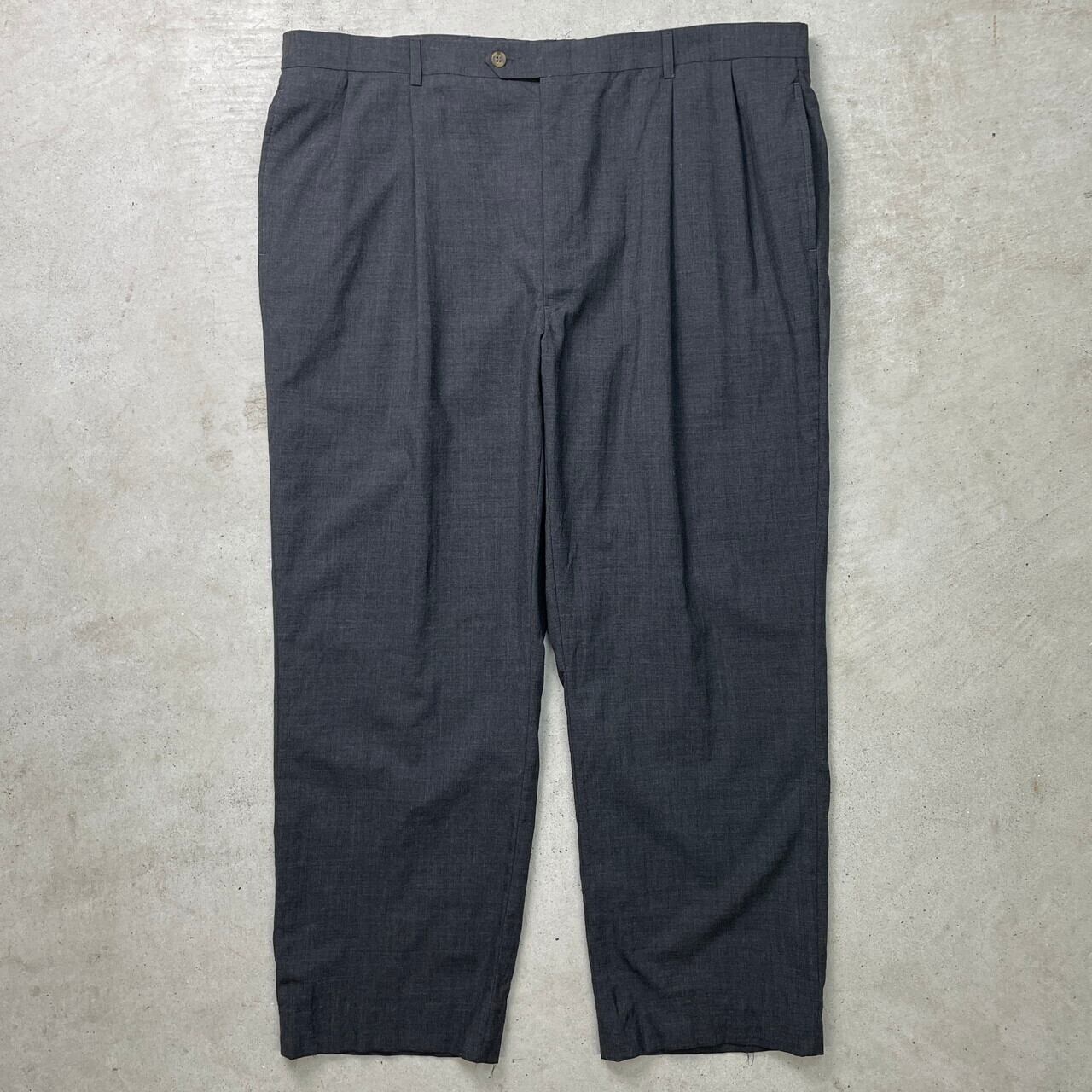 TOMMY HILFIGER 90年代 2タック ワイド スラックスパンツ L ネイビー ウール ギャバジン
