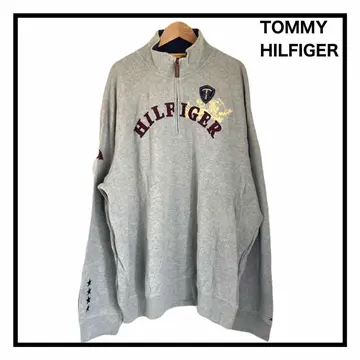 トミーヒルフィガー スウェット ハーフジップ 刺繍 ワッペン デカロゴ XXL