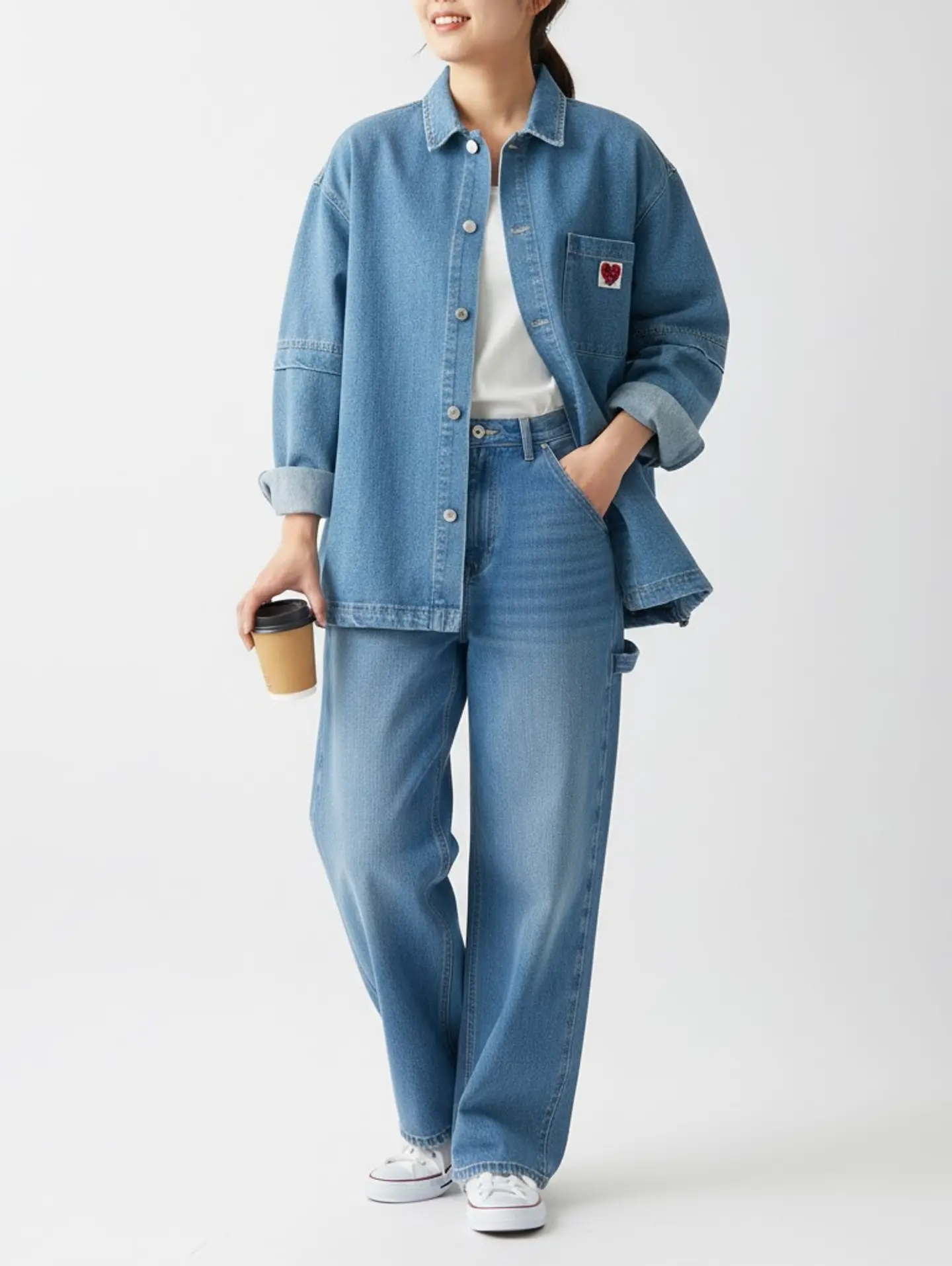■デザイン ブルーの美しい色合いに、洗練されたシルエットが特徴的なアイテムです。パンツとカバーオールジャケットの組み合わせは、スタイリッシュながらもカジュアルな雰囲気を演出します! コットン素材を使用し、柔らかな肌触りで快適な着心地を実現。長袖のジャケットにはワンポイントの刺繍が施されており、シンプルながらもおしゃれ感を引き立てています! ■コーディネート Tシャツやタンクトップと合わせれば、リラックスした日常スタイルが完成します。また、異素材を加えたレイヤードスタイルにも対応可能で、季節を問わず幅広いコーディネートが楽しめます。 スニーカーやブーツと合わせることで、アクティブな印象を演出しつつ、休日のお出かけに最適な装いに仕上がります。ユニセックスデザインなので、男女問わずお楽しみいただけます! #ABY280 #ストリート #シンプル #カジュアル #デニム #古着 #fashion #used
